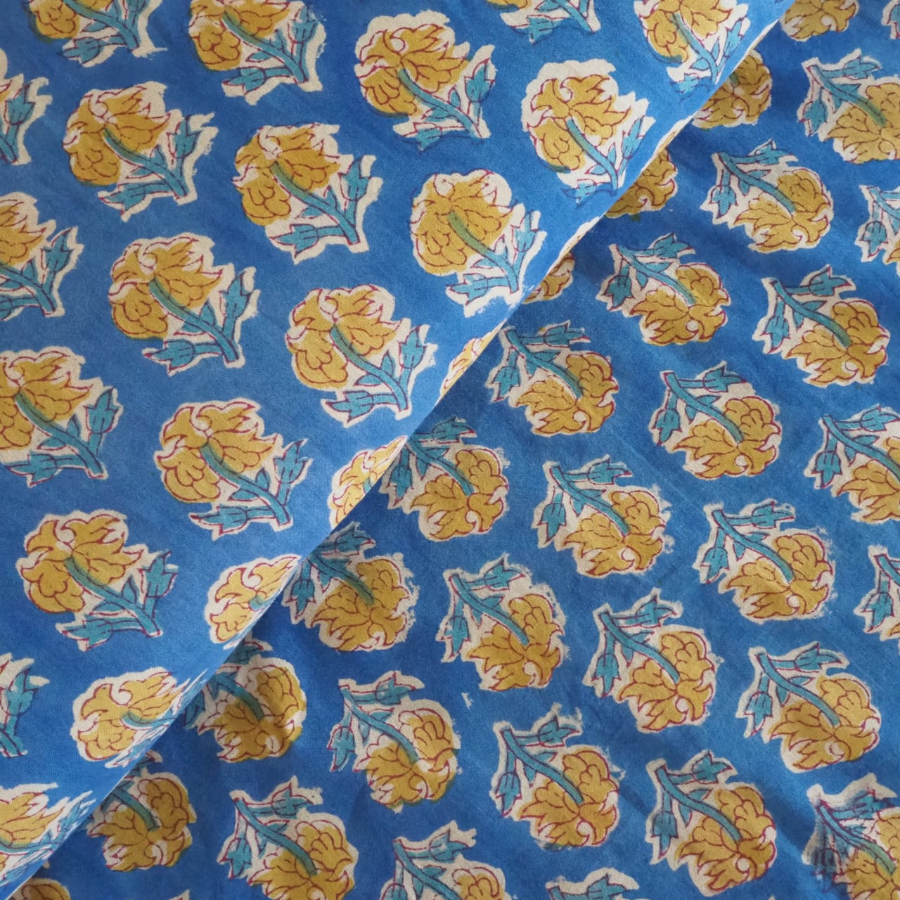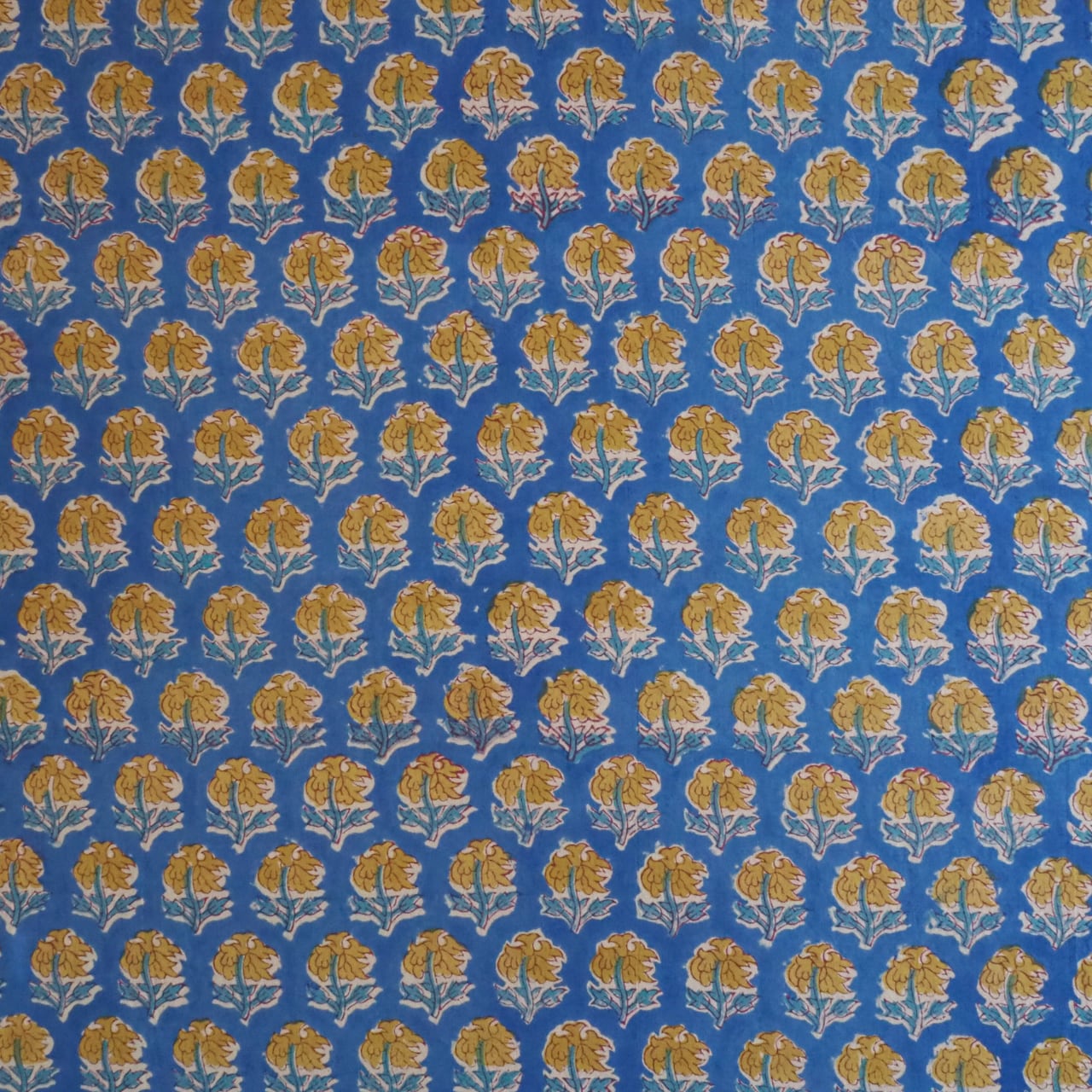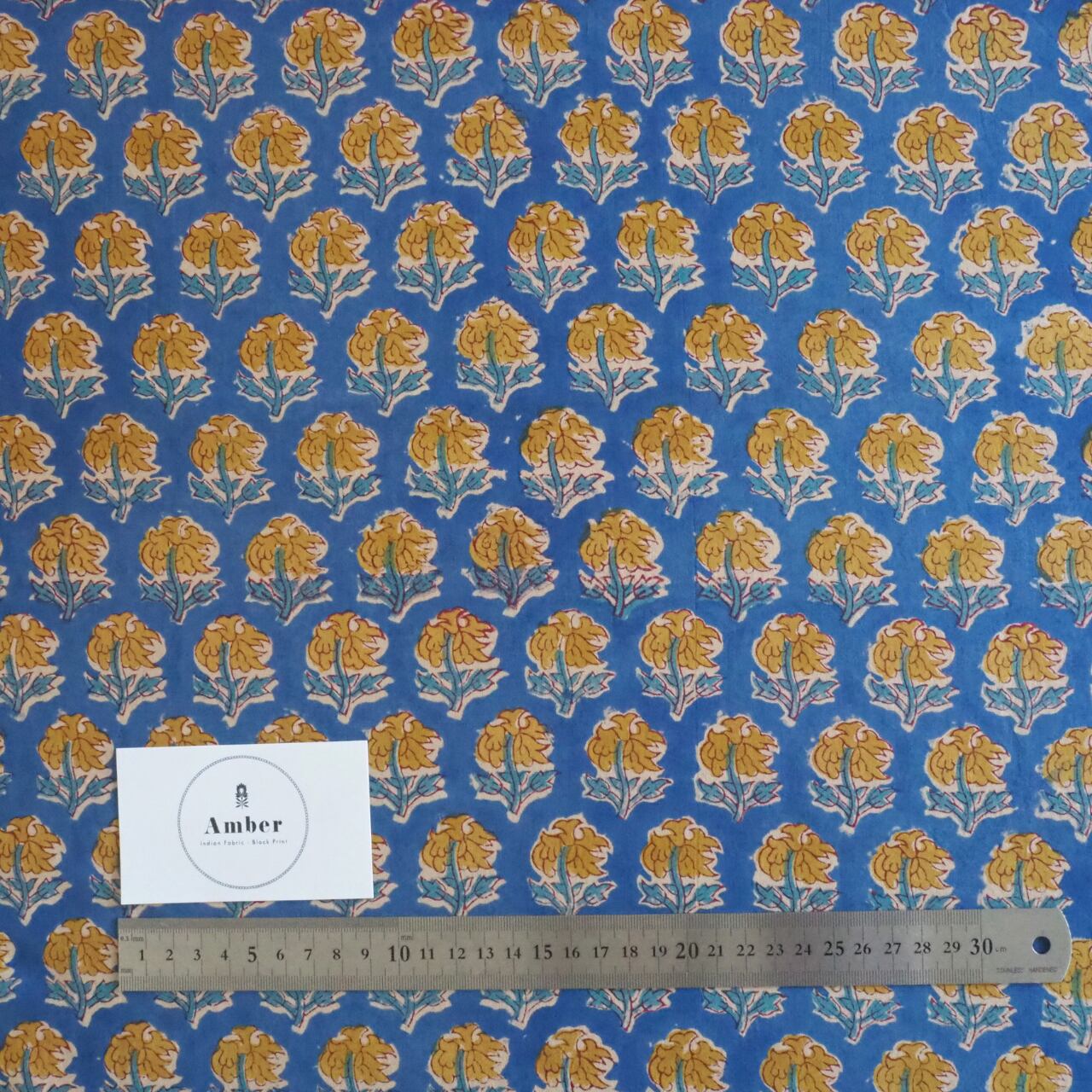 ブロックプリント生地【50cm単位】インド綿 小花柄 ブルー×黄色 #52616-BL2