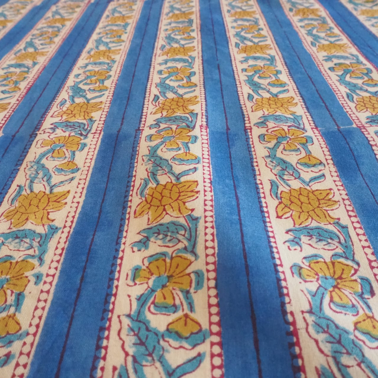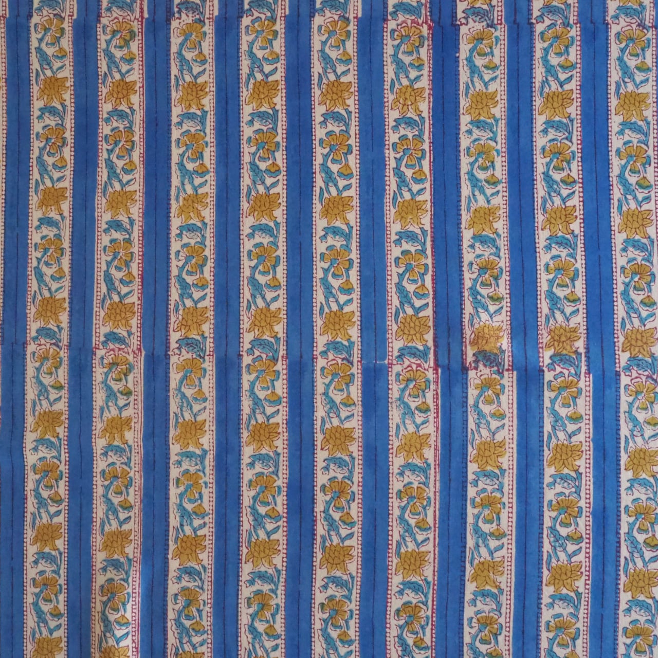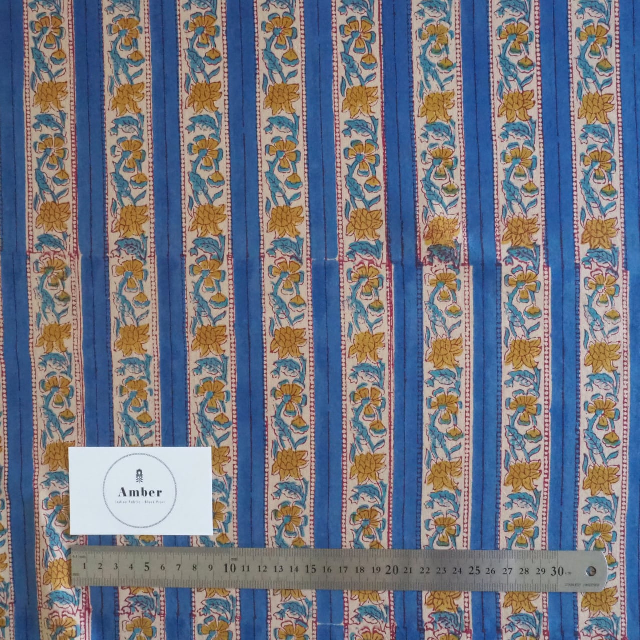 ブロックプリント生地【50cm単位】インド綿 ストライプ柄 ブルー×黄色 #52716-BL3