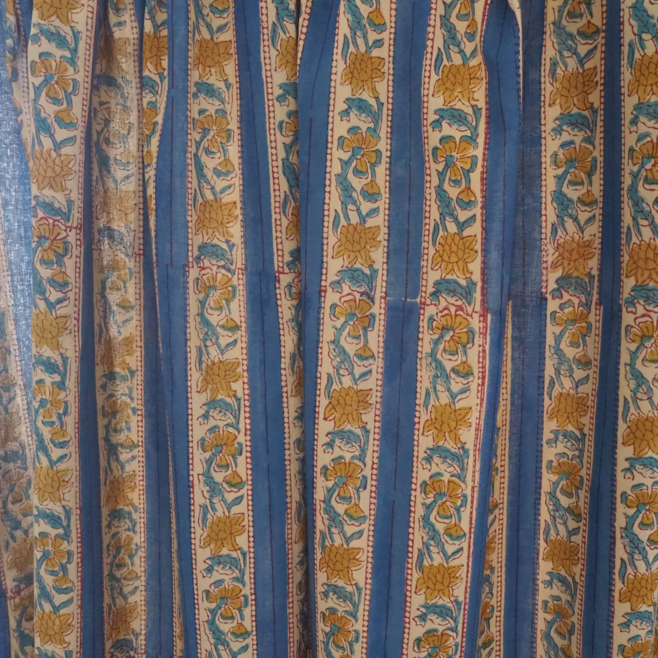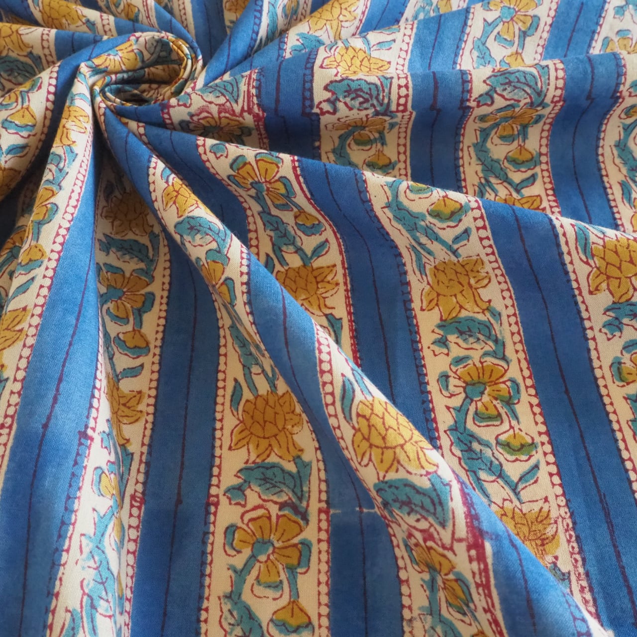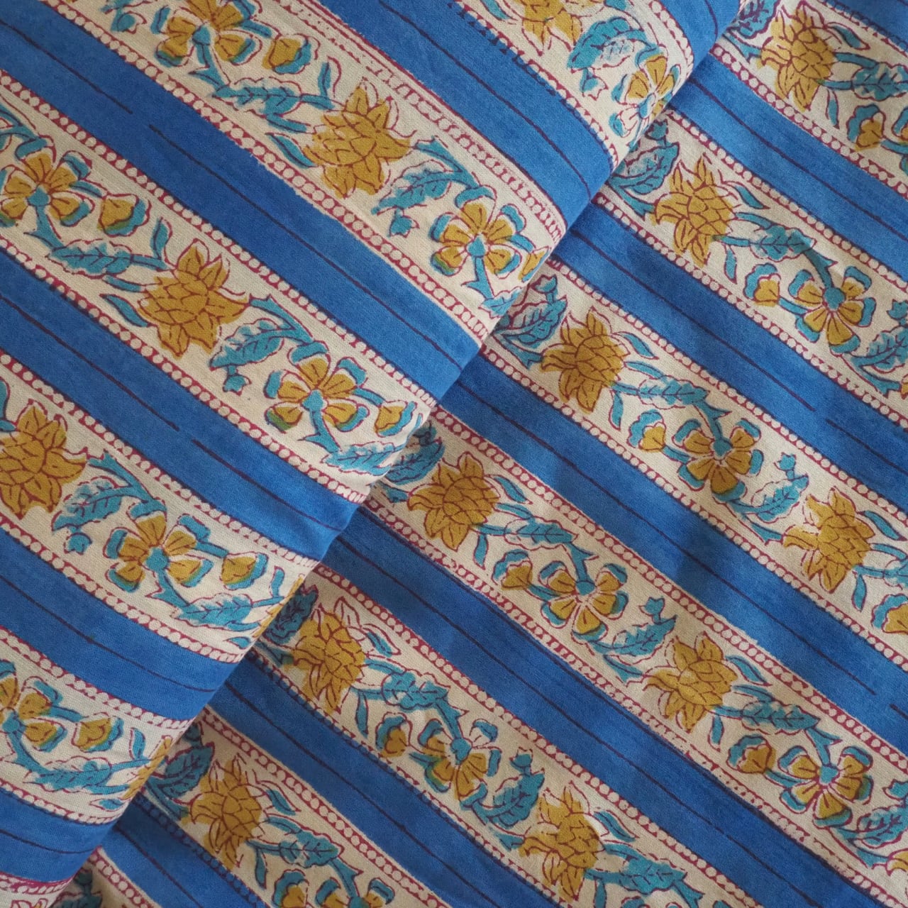 ブロックプリント生地【50cm単位】インド綿 ストライプ柄 ブルー×黄色 #52716-BL3