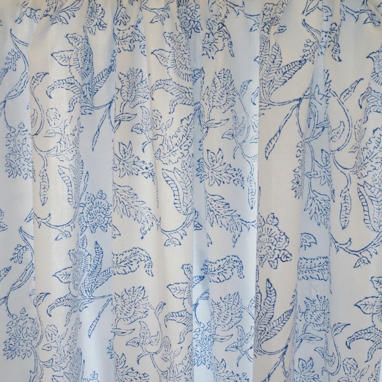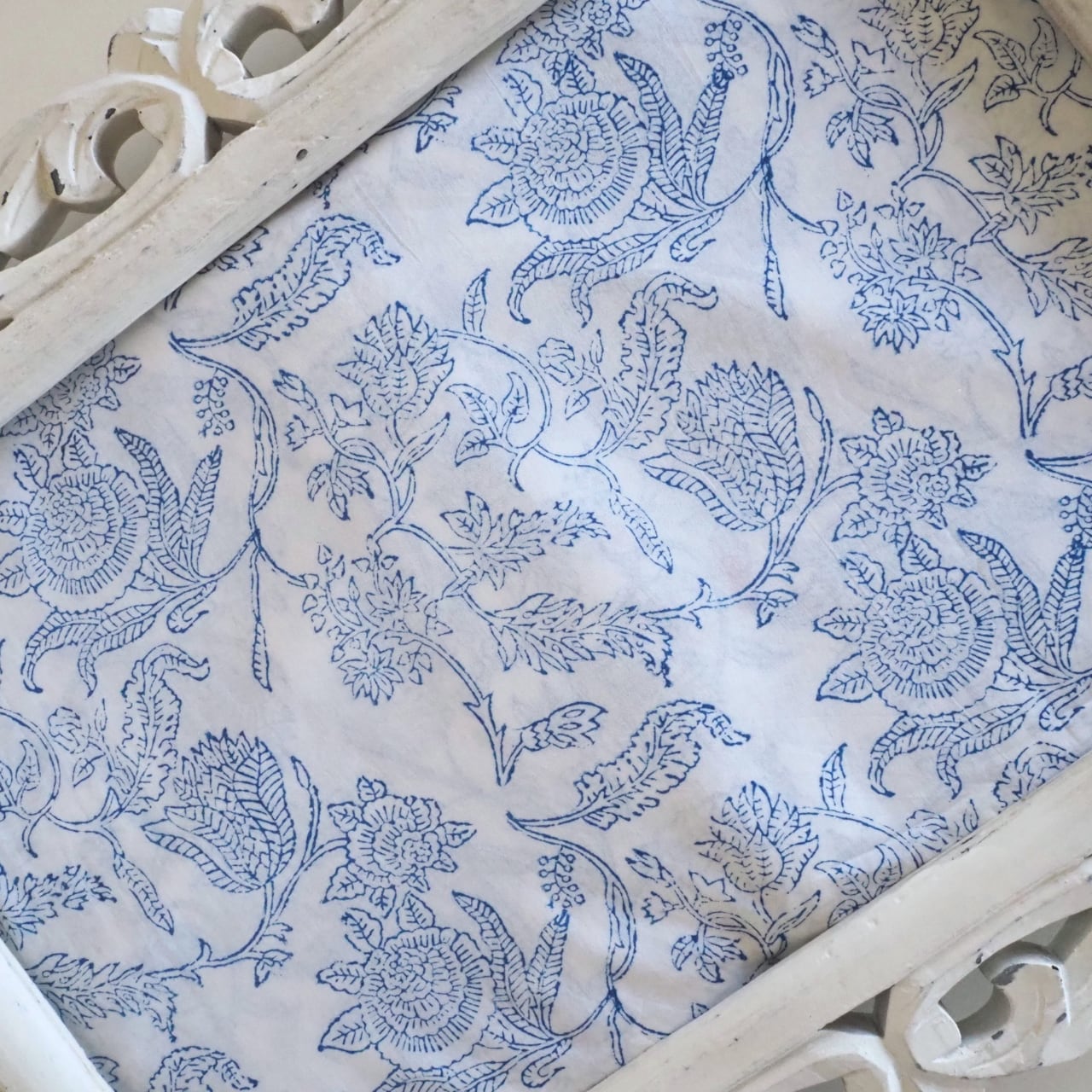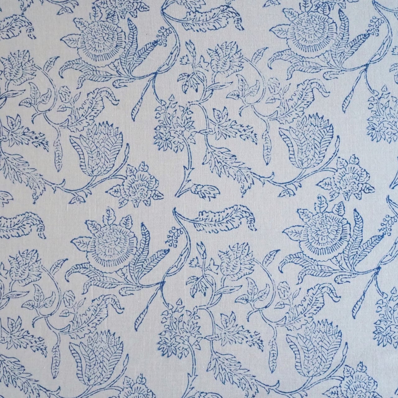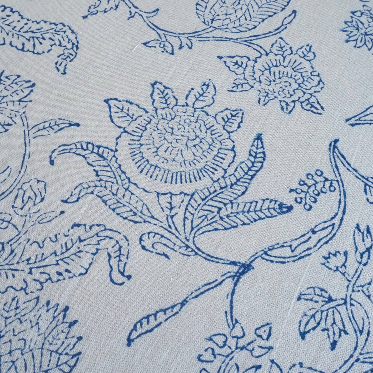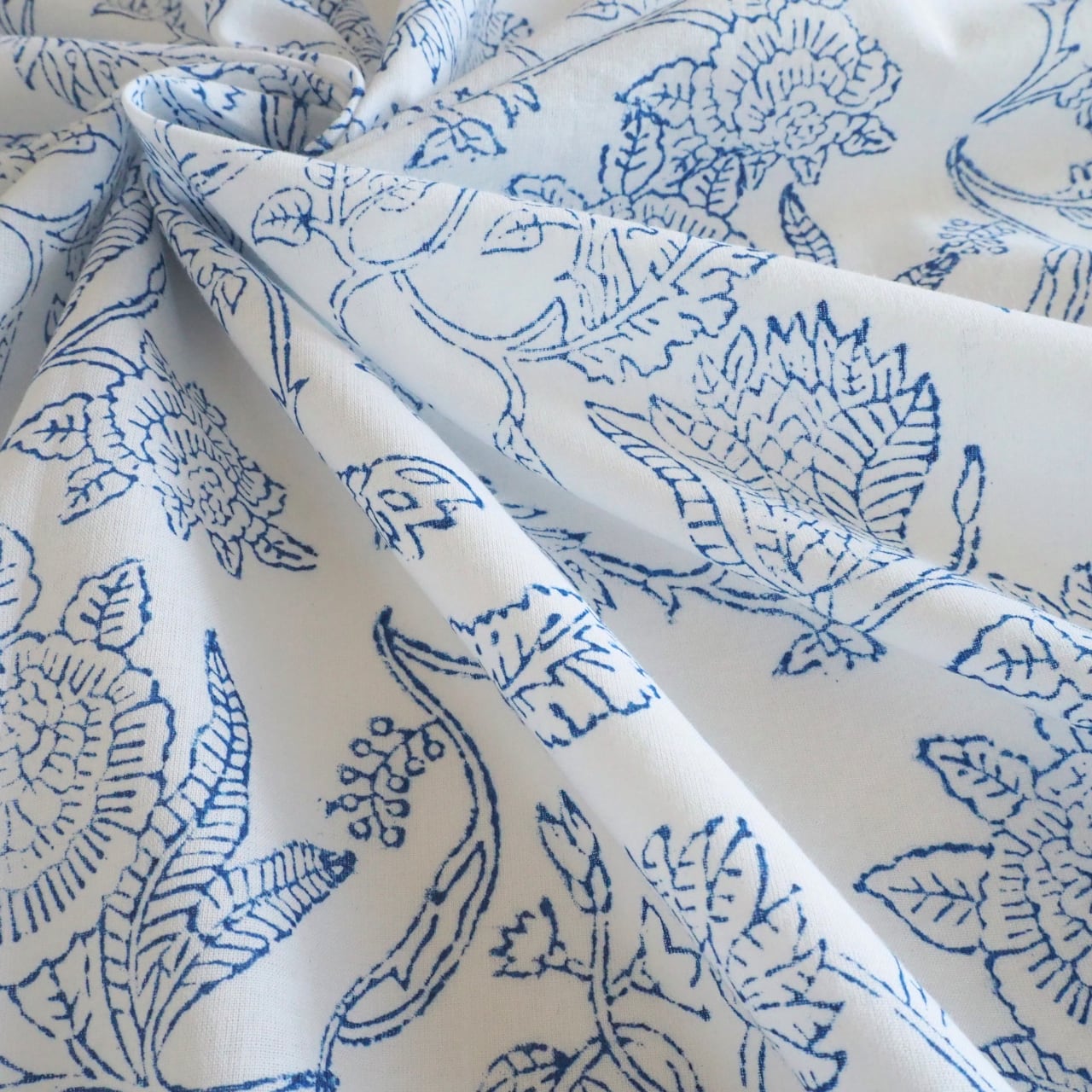 ブロックプリント生地【50cm単位】インド綿 花柄 白×ブルー #52810-WT1