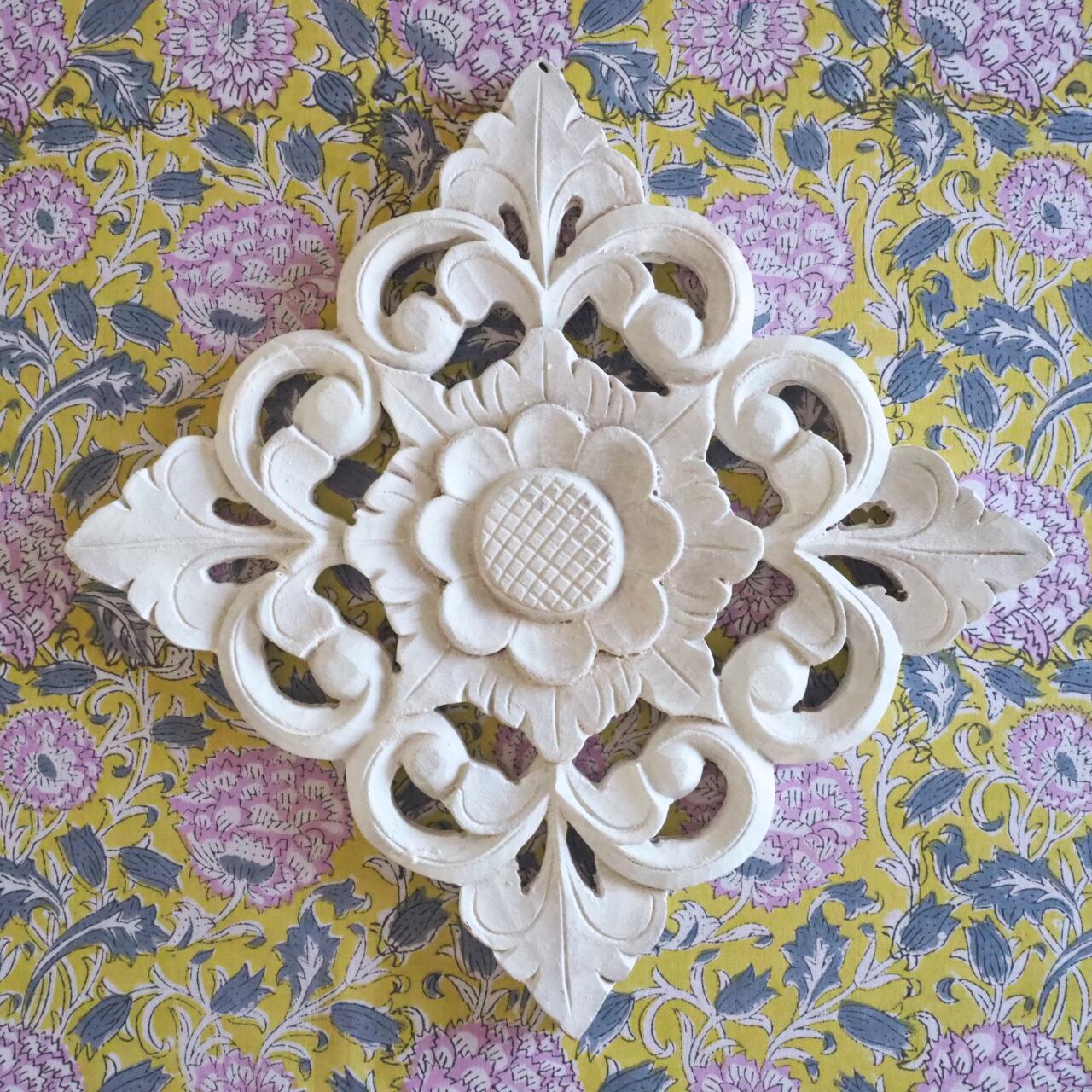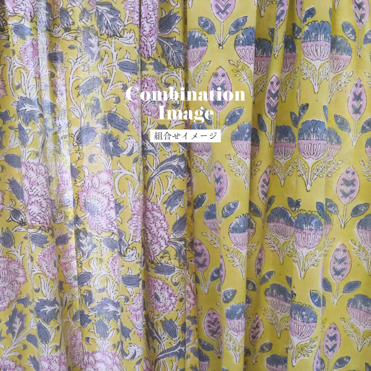 ハンドブロックプリントと呼ばれるインドのジャイプール地方に古くから伝わる伝統的な技法で、木彫りのスタンプで色を何度も重ね、全ての工程がインドの職人さんの手作業によって仕上がるAll Handmadeの生地です。