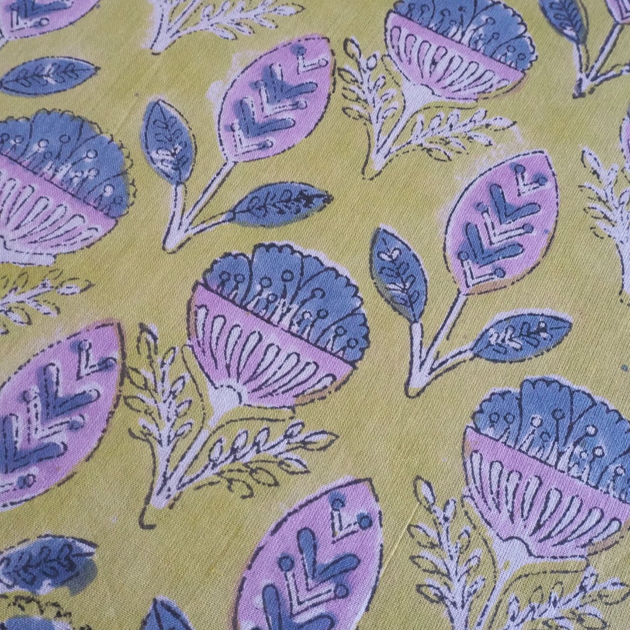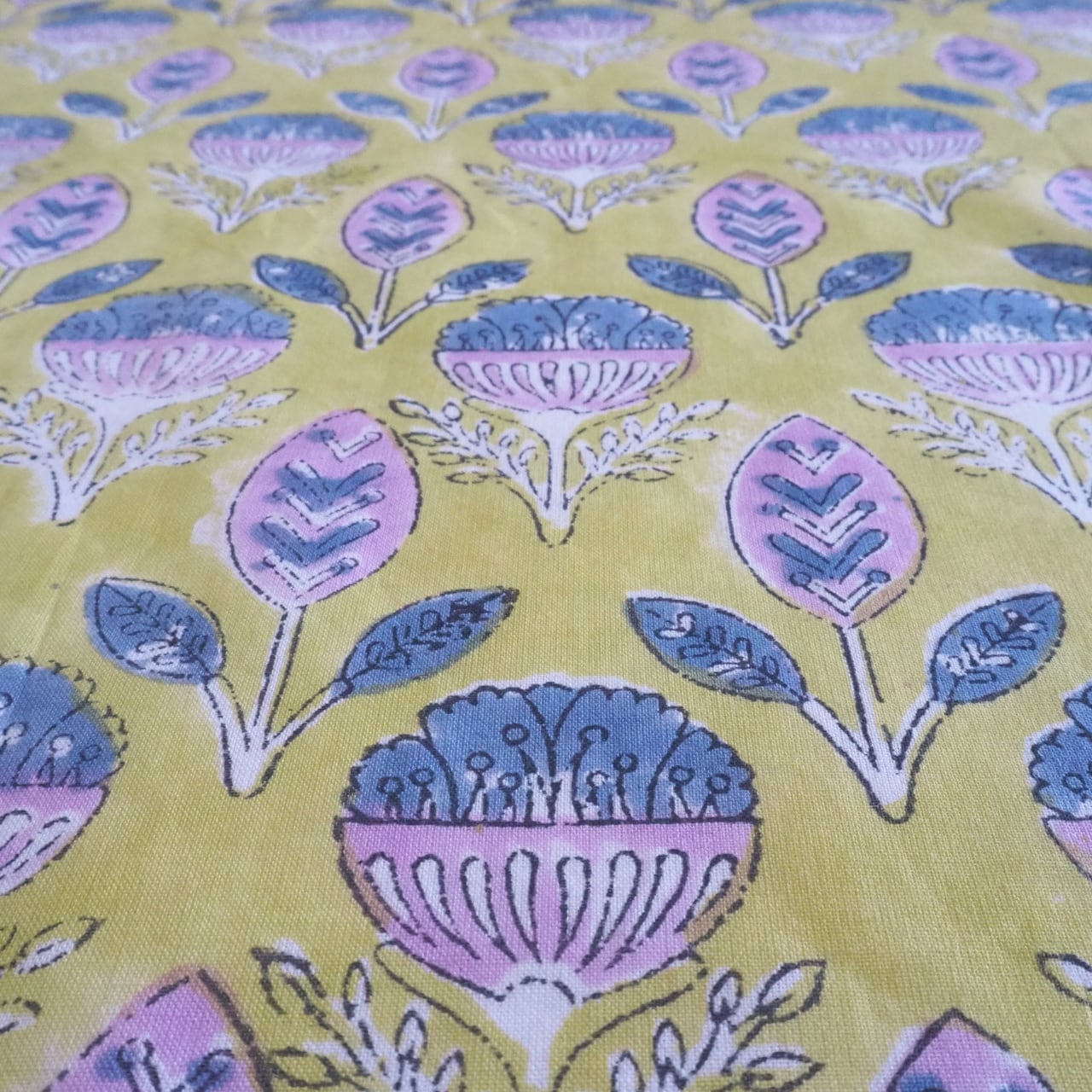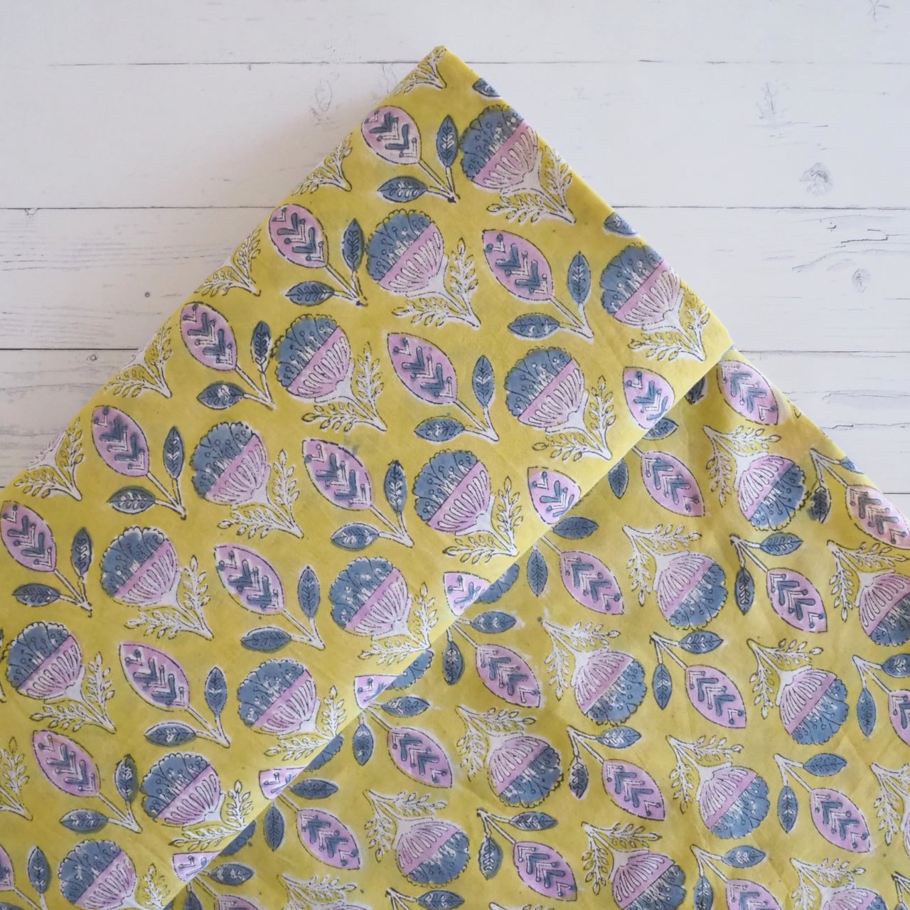 色むらや、柄のズレ、植物染料の匂いはハンドブロックプリントならではの味わいとなります。