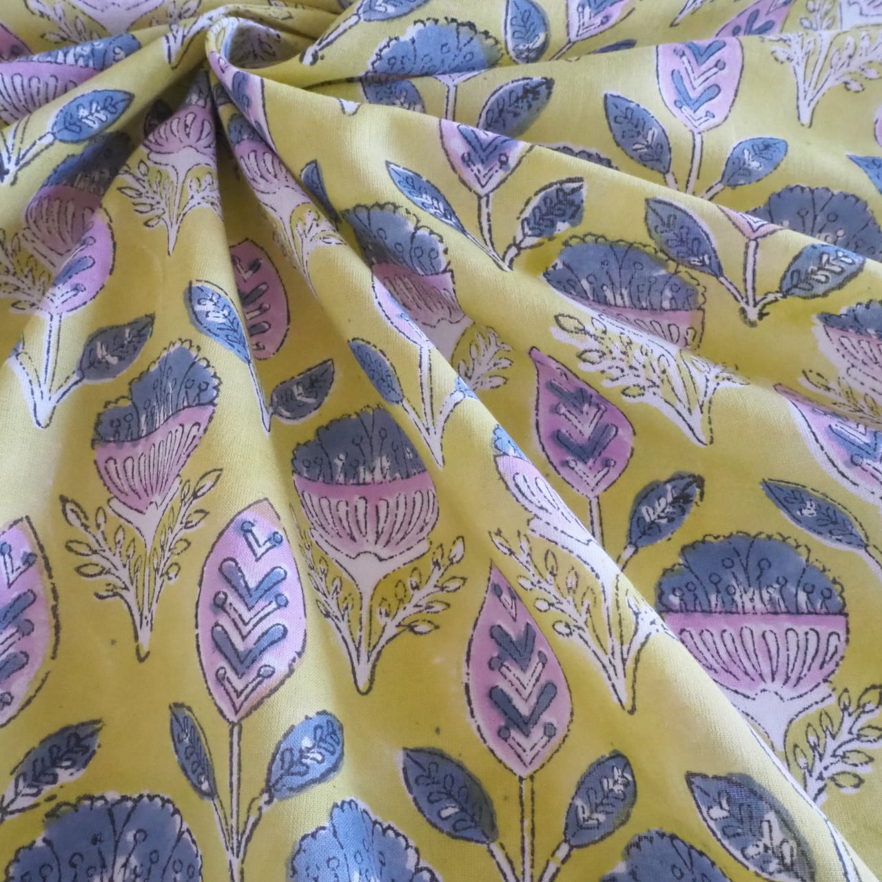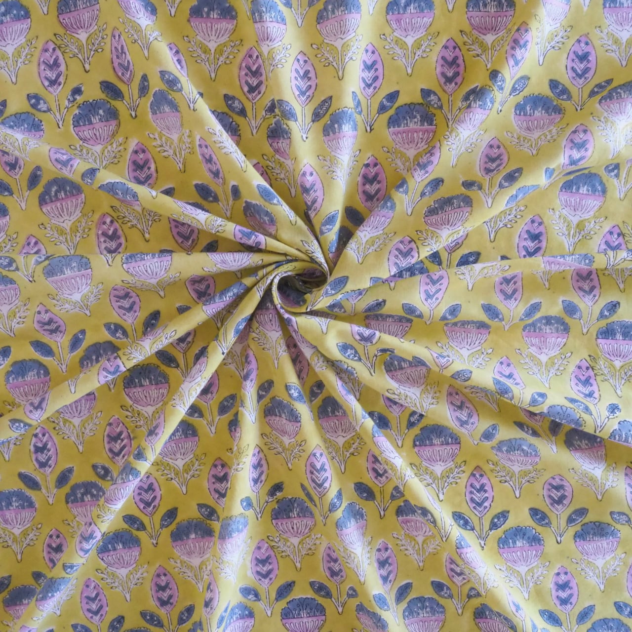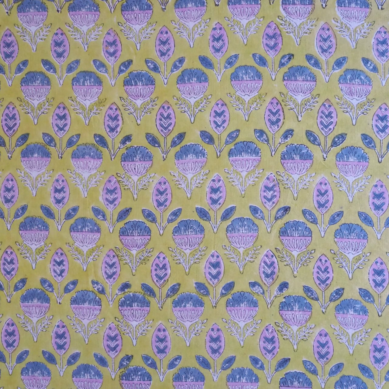 色むらや、柄のズレ、植物染料の匂いはハンドブロックプリントならではの味わいとなります。