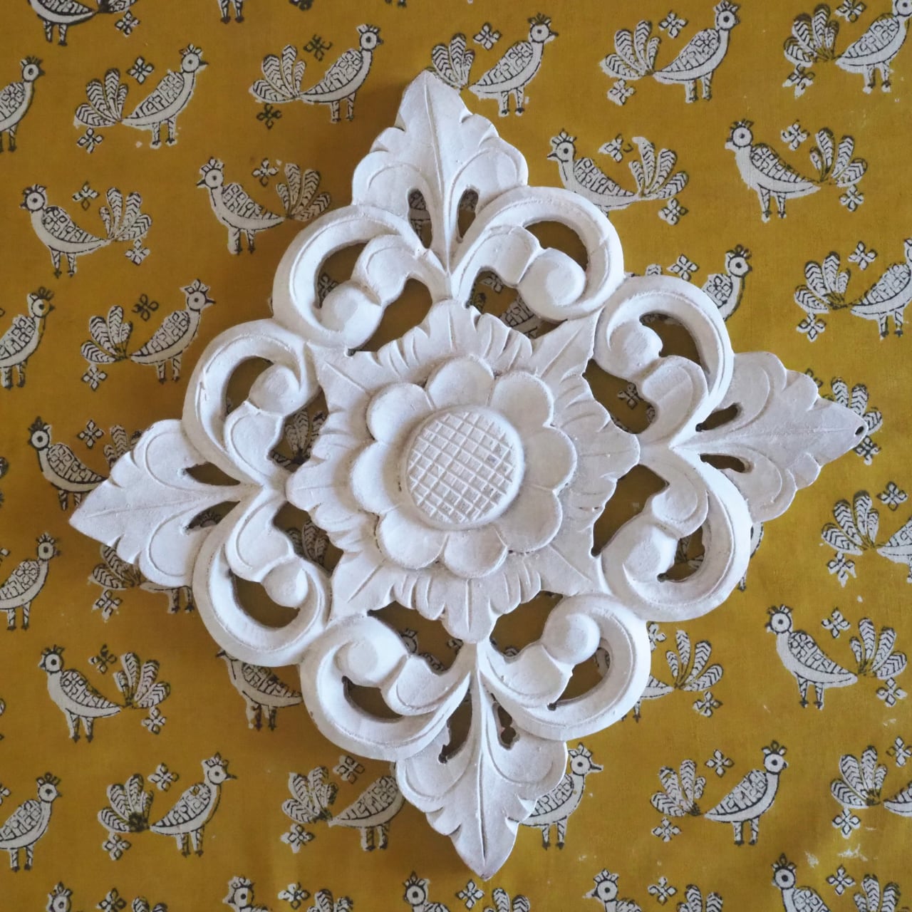 ハンドブロックプリントと呼ばれるインドのジャイプール地方に古くから伝わる伝統的な技法で、木彫りのスタンプで色を何度も重ね、全ての工程がインドの職人さんの手作業によって仕上がるAll Handmadeの生地です。