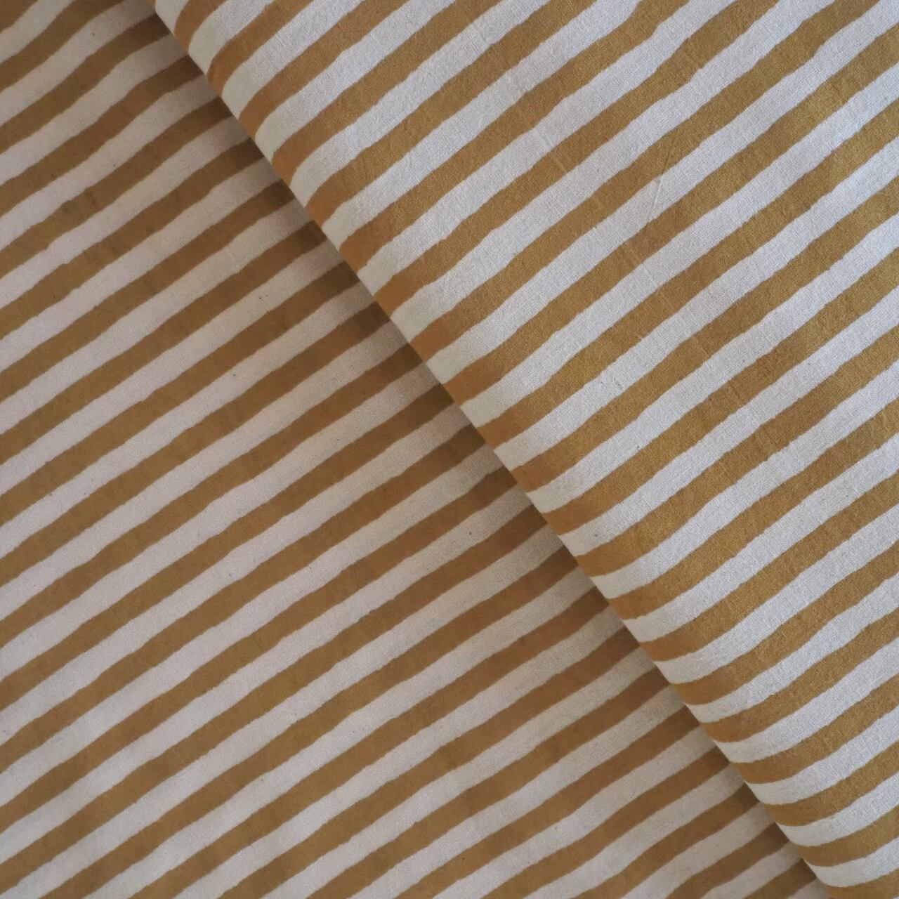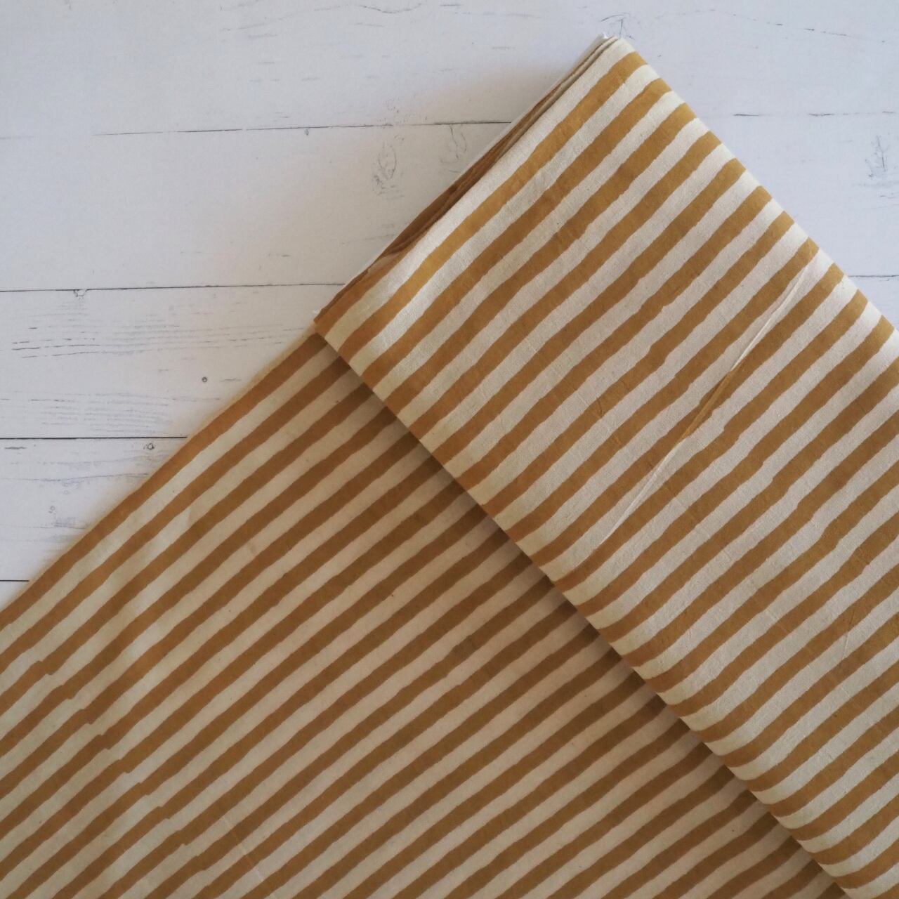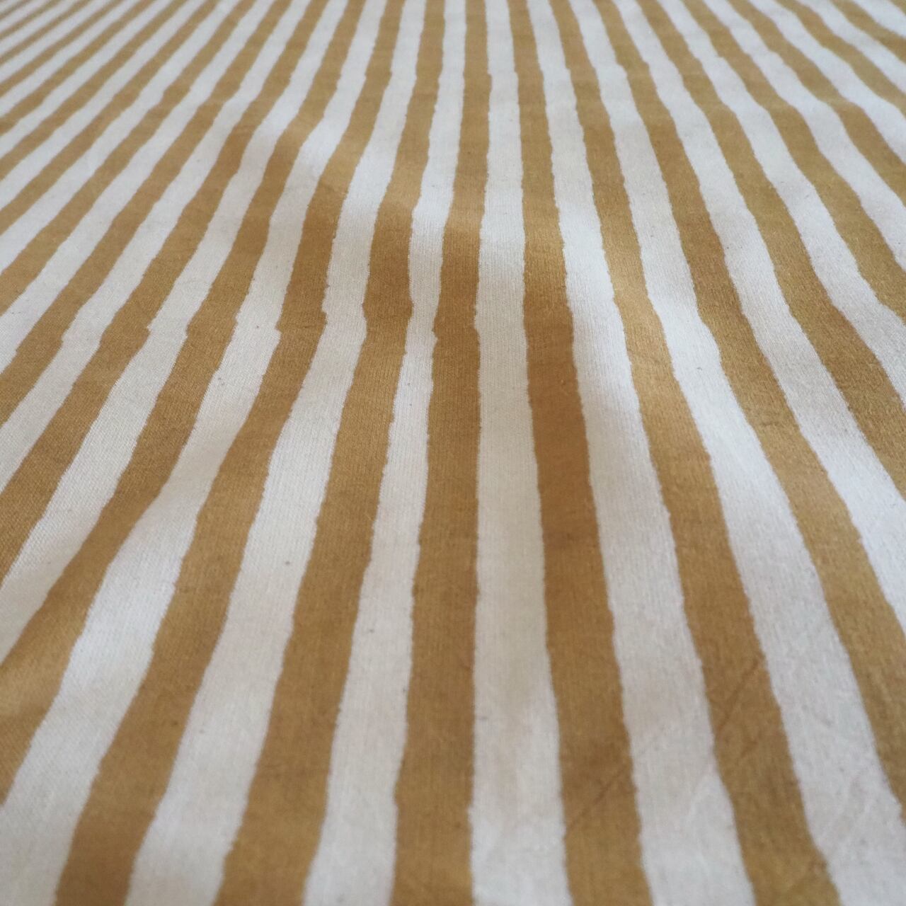 ブロックプリント生地【50cm単位】インド綿 ストライプ柄 イエロー×生成り #53410-YL1