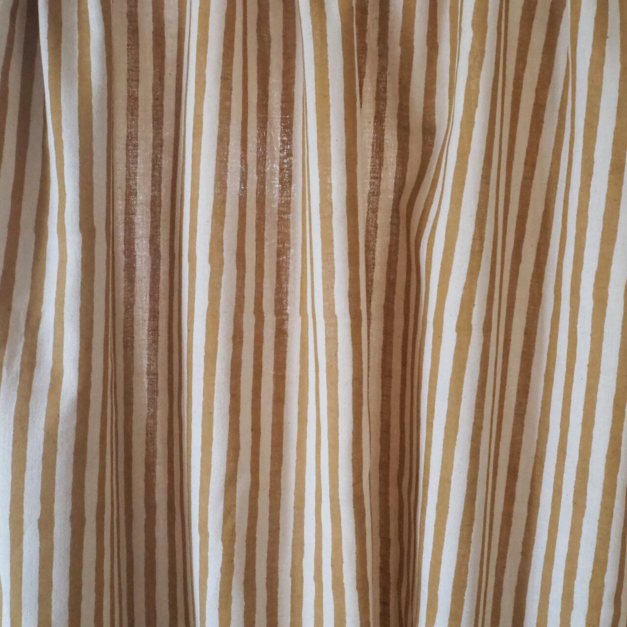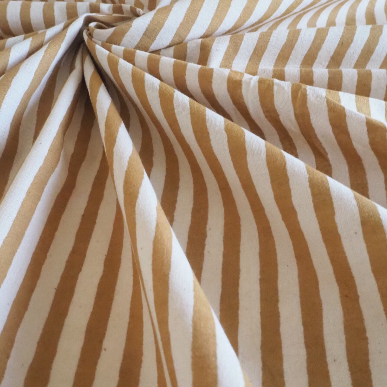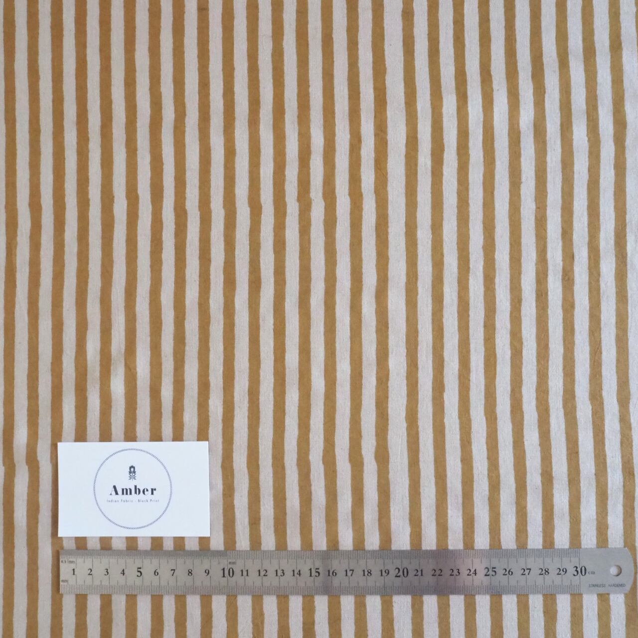 ブロックプリント生地【50cm単位】インド綿 ストライプ柄 イエロー×生成り #53410-YL1