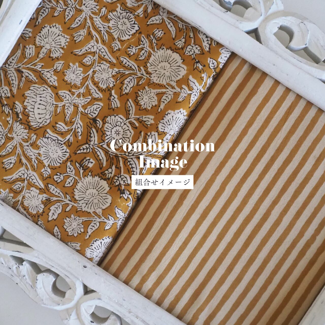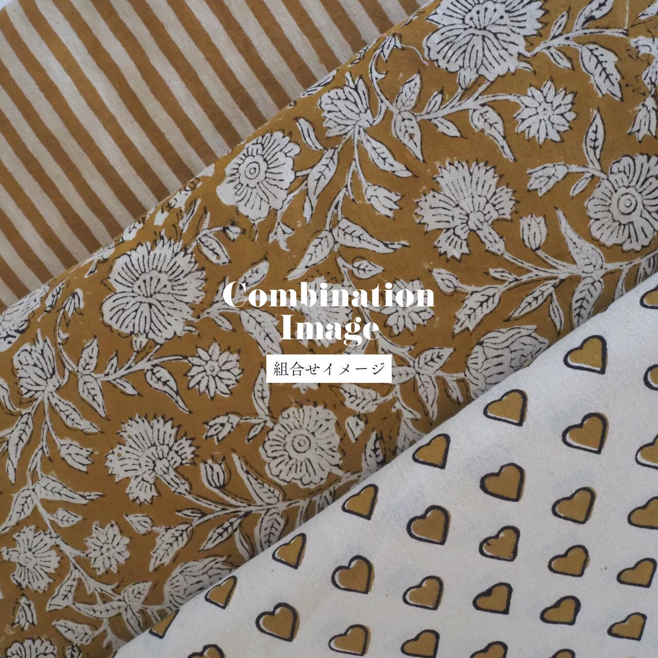 ハンドブロックプリントと呼ばれるインドのジャイプール地方に古くから伝わる伝統的な技法で、木彫りのスタンプで色を何度も重ね、全ての工程がインドの職人さんの手作業によって仕上がるAll Handmadeの生地です。