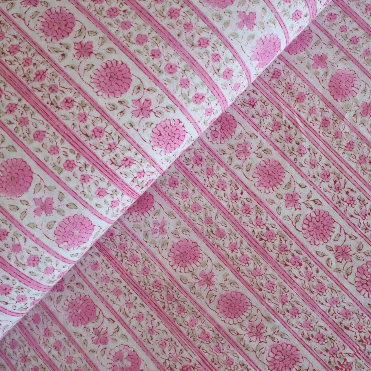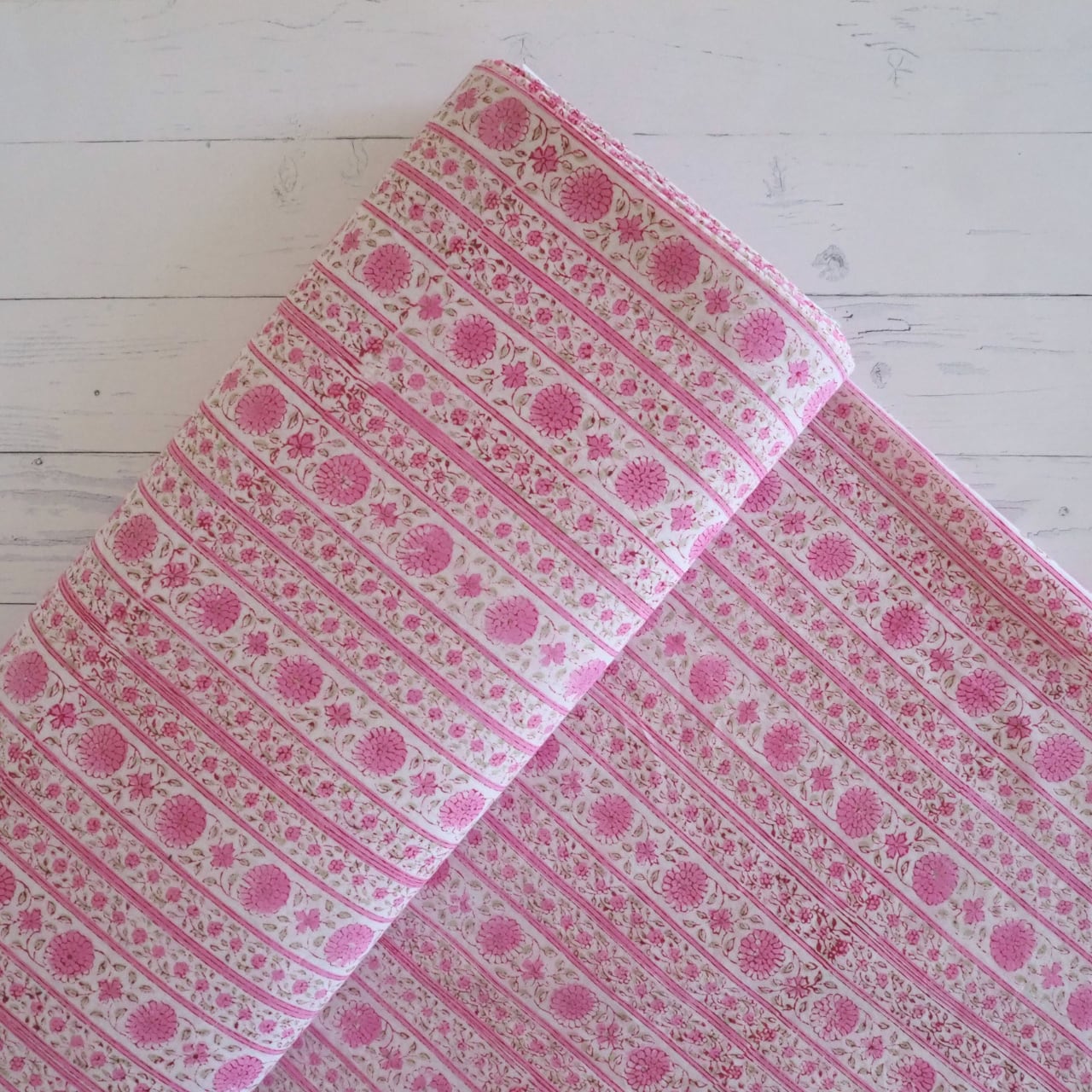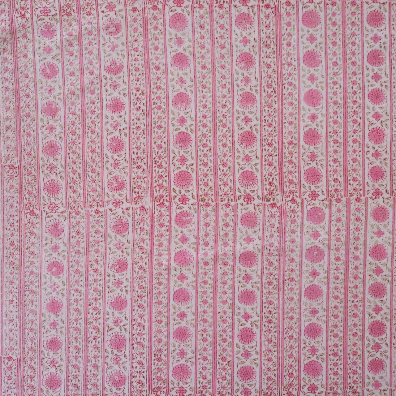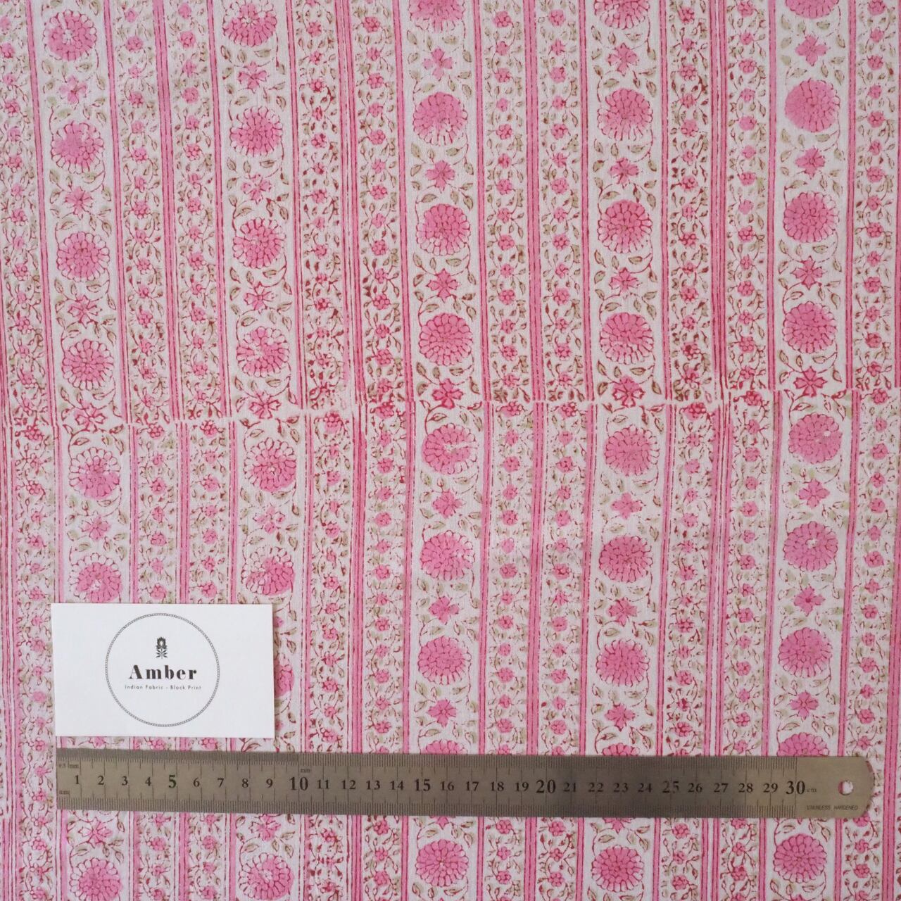 ブロックプリント生地【50cm単位】インド綿 ストライプ柄 白×ピンク #54019-WT1