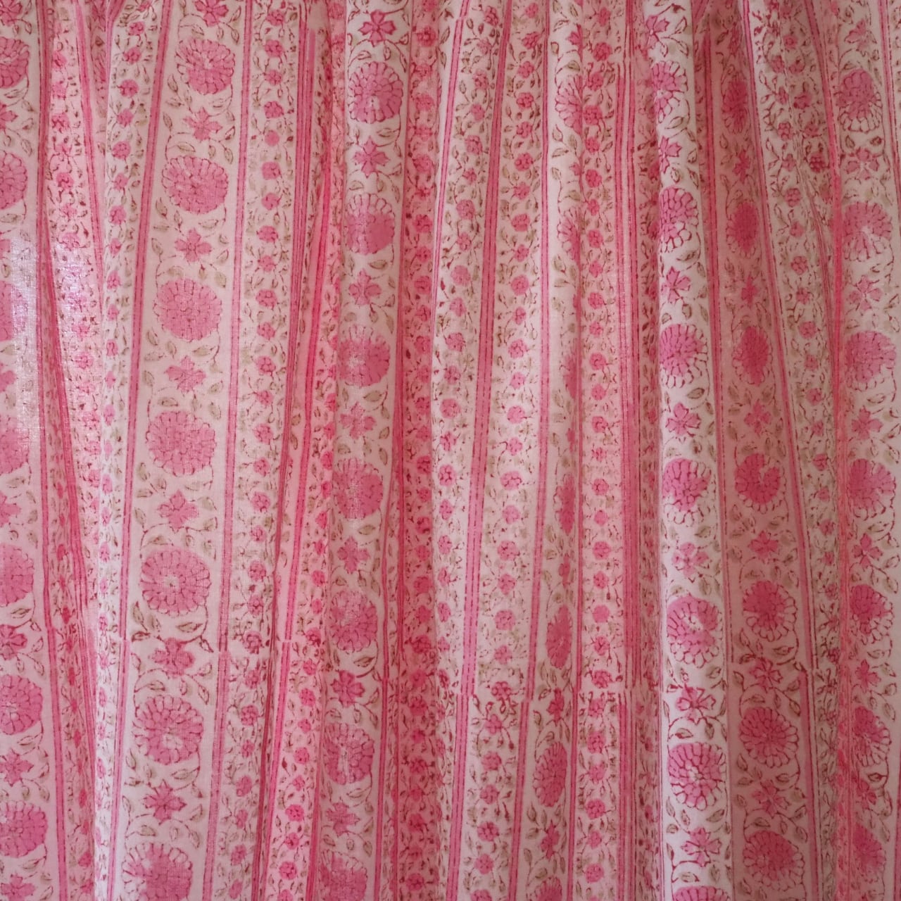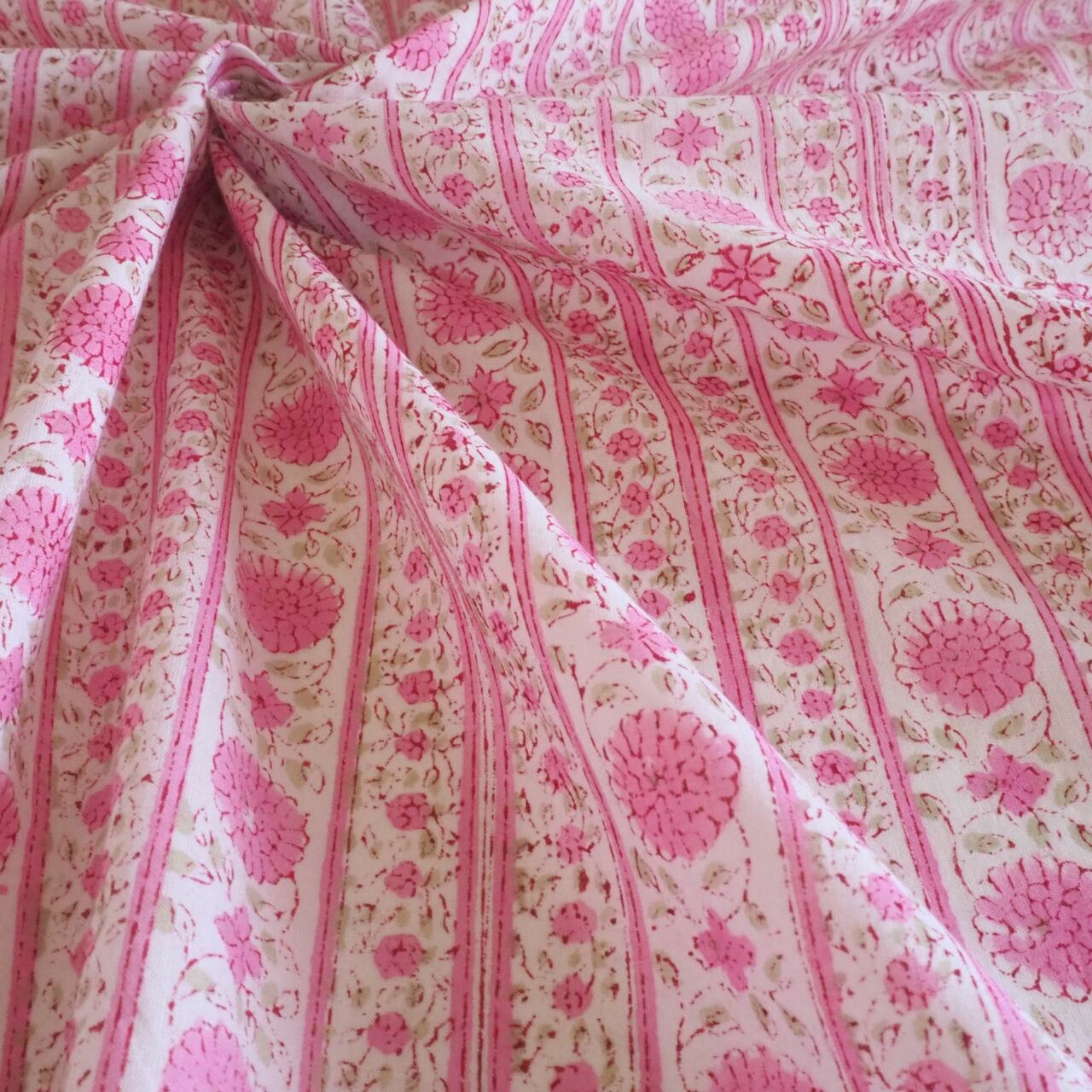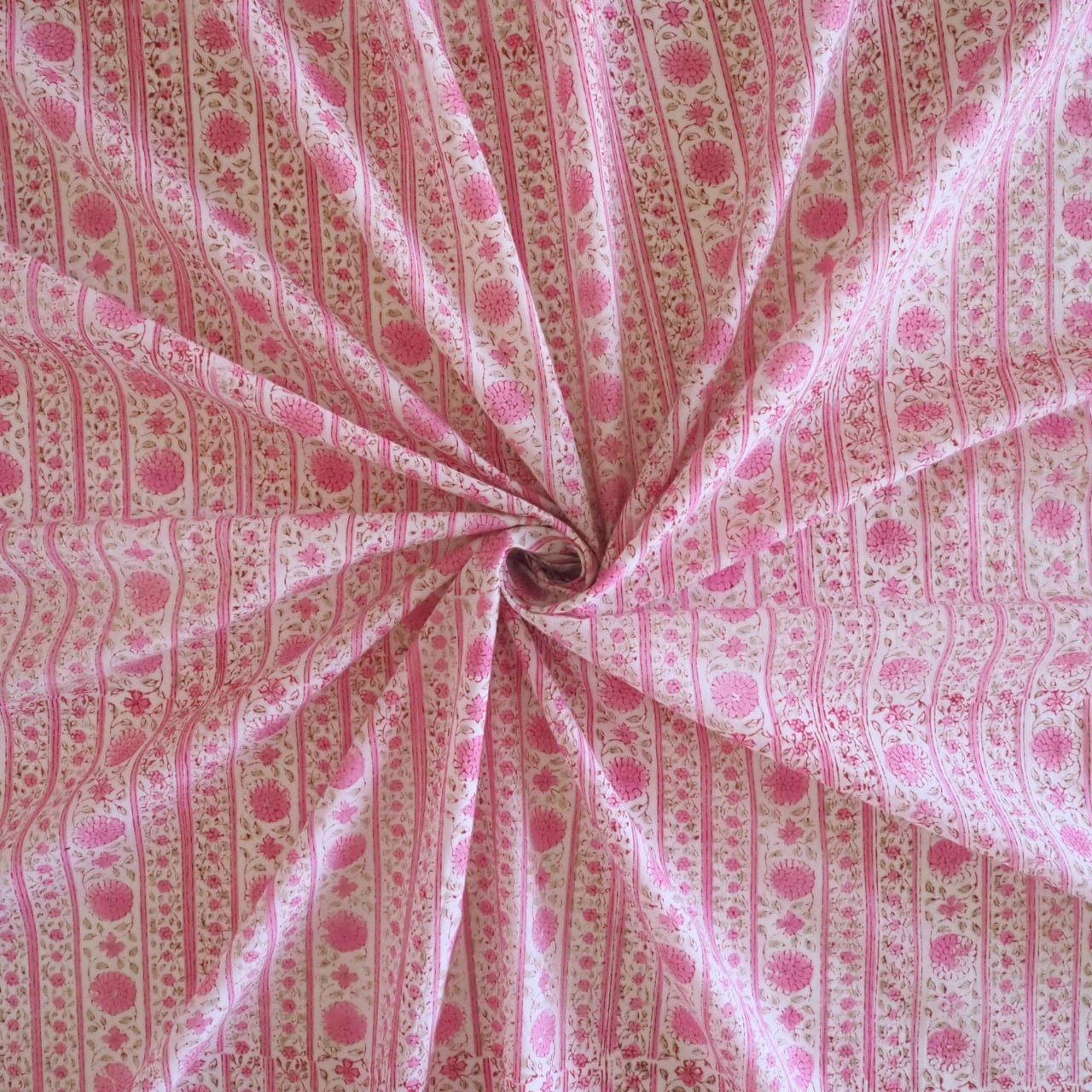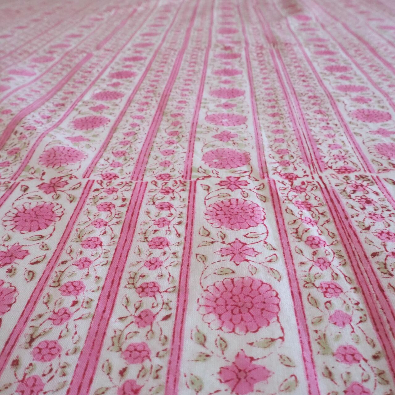 ブロックプリント生地【50cm単位】インド綿 ストライプ柄 白×ピンク #54019-WT1