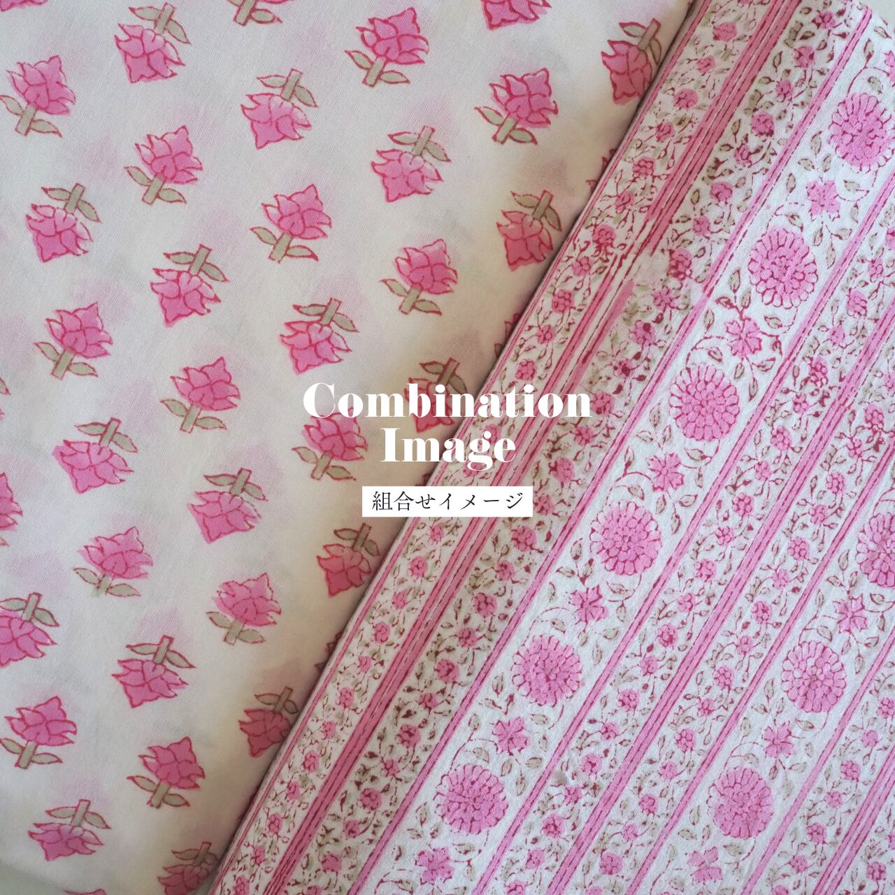 ハンドブロックプリントと呼ばれるインドのジャイプール地方に古くから伝わる伝統的な技法で、木彫りのスタンプで色を何度も重ね、全ての工程がインドの職人さんの手作業によって仕上がるAll Handmadeの生地です。