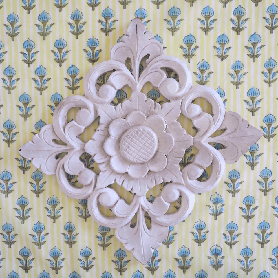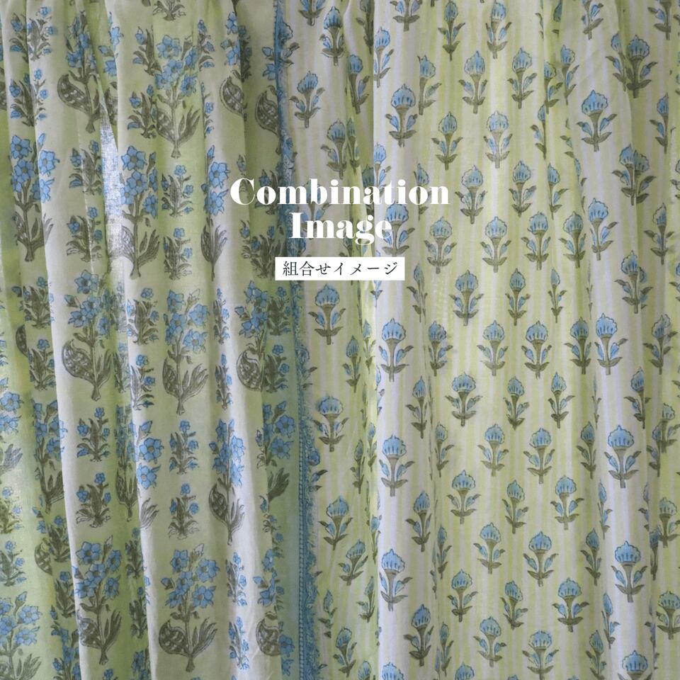 ハンドブロックプリントと呼ばれるインドのジャイプール地方に古くから伝わる伝統的な技法で、木彫りのスタンプで色を何度も重ね、全ての工程がインドの職人さんの手作業によって仕上がるAll Handmadeの生地です。