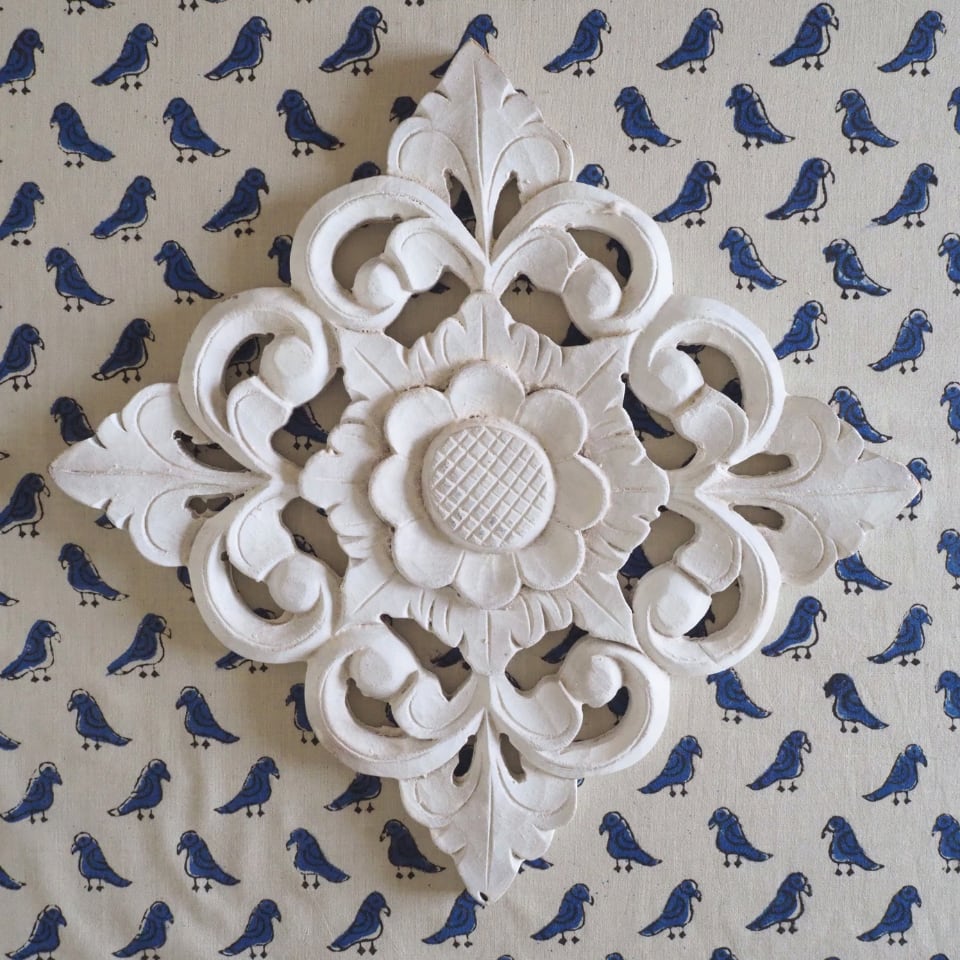 ハンドブロックプリントと呼ばれるインドのジャイプール地方に古くから伝わる伝統的な技法で、木彫りのスタンプで色を何度も重ね、全ての工程がインドの職人さんの手作業によって仕上がるAll Handmadeの生地です。