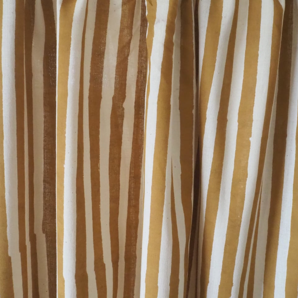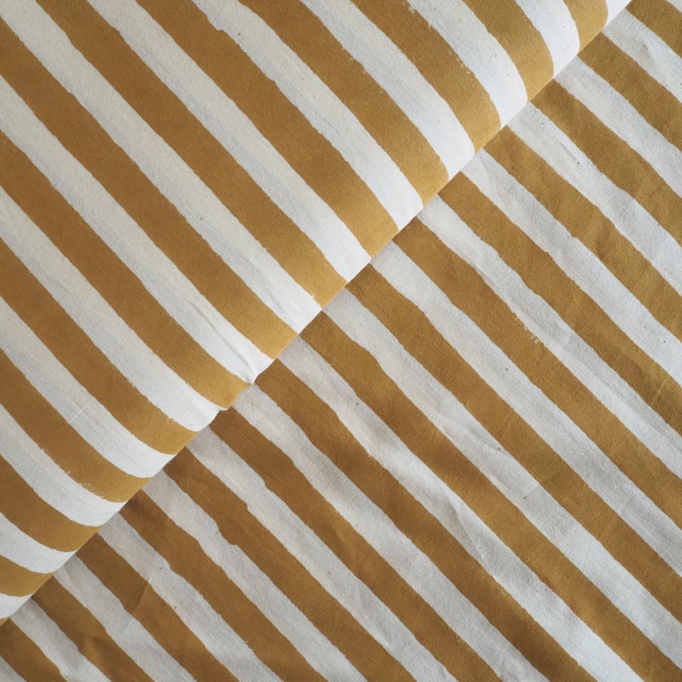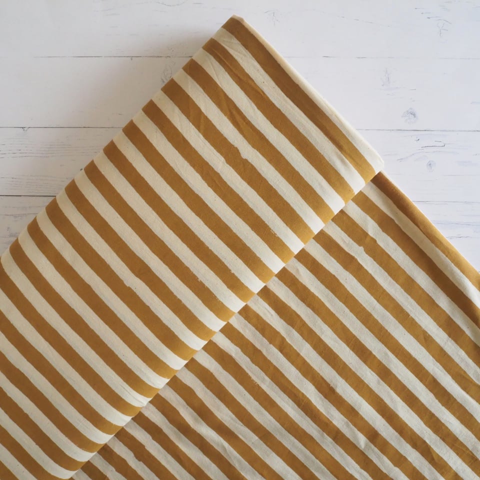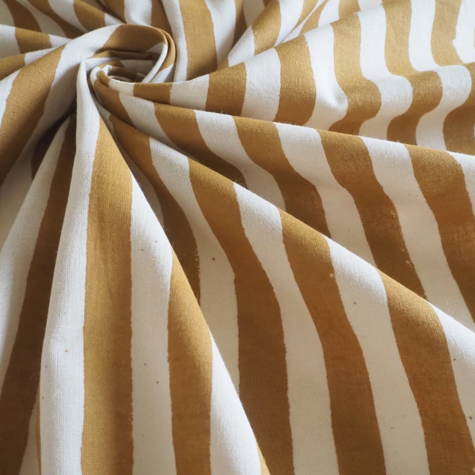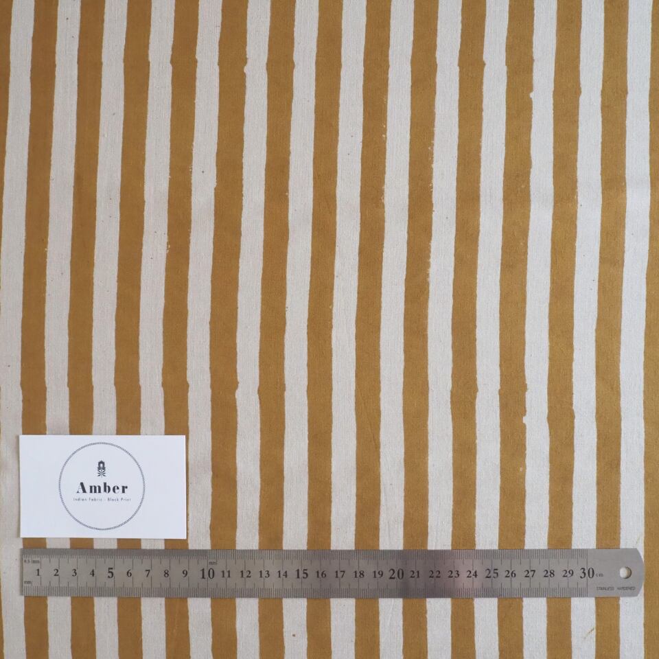 ブロックプリント生地【50cm単位】インド綿 ストライプ柄(大) 生成り×イエロー #55710-YL1