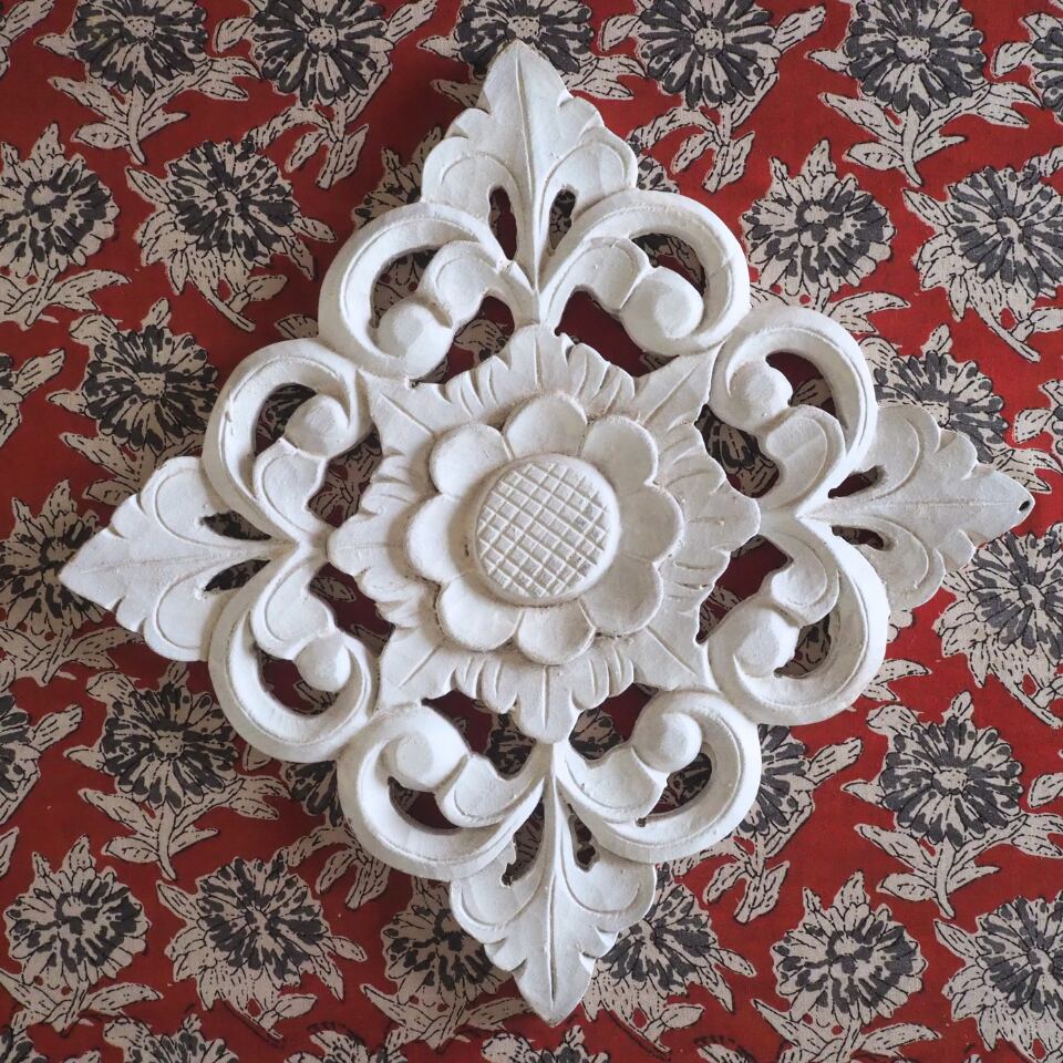 ハンドブロックプリントと呼ばれるインドのジャイプール地方に古くから伝わる伝統的な技法で、木彫りのスタンプで色を何度も重ね、全ての工程がインドの職人さんの手作業によって仕上がるAll Handmadeの生地です。