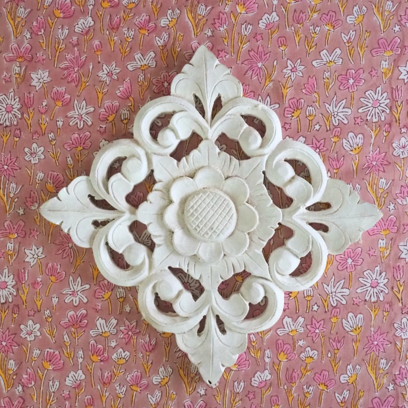 ハンドブロックプリントと呼ばれるインドのジャイプール地方に古くから伝わる伝統的な技法で、木彫りのスタンプで色を何度も重ね、全ての工程がインドの職人さんの手作業によって仕上がるAll Handmadeの生地です。