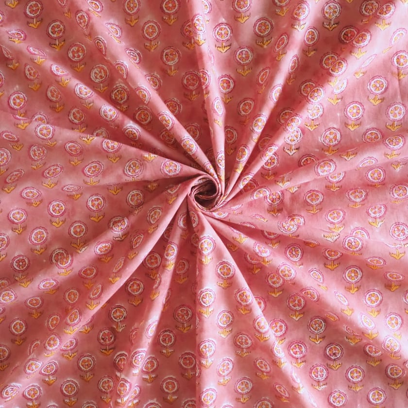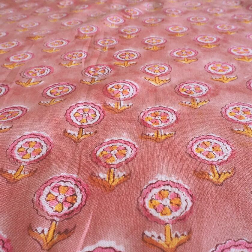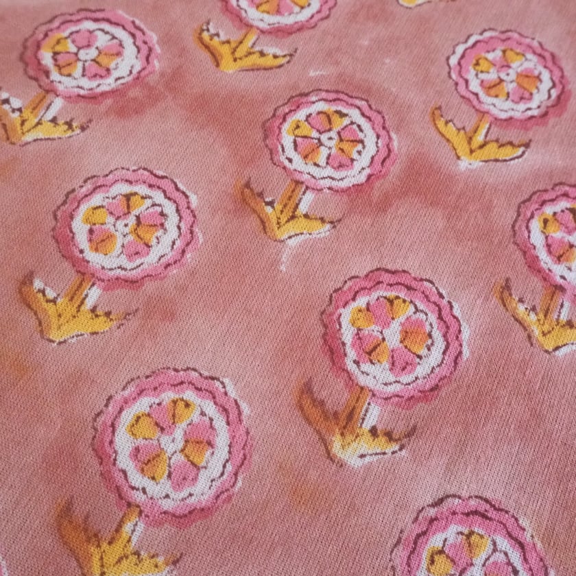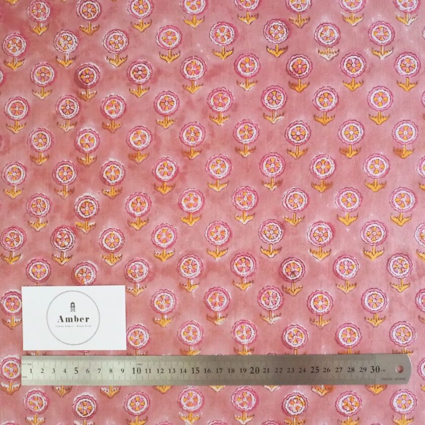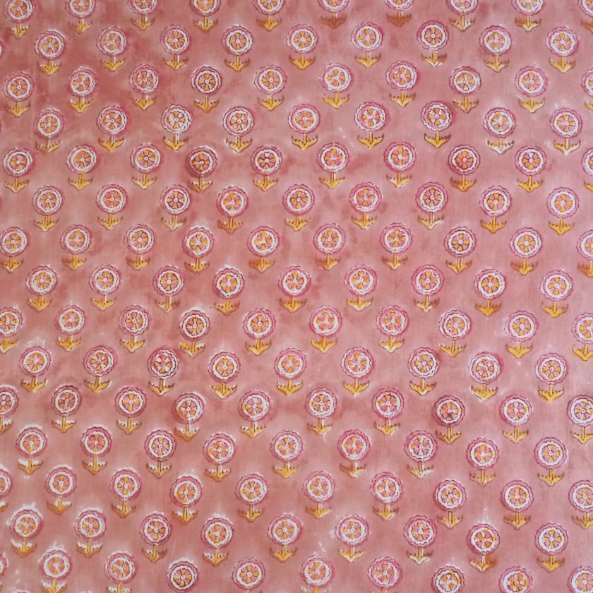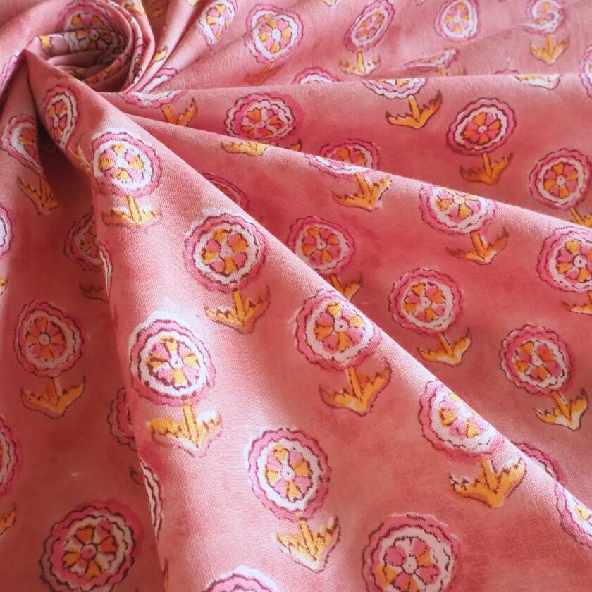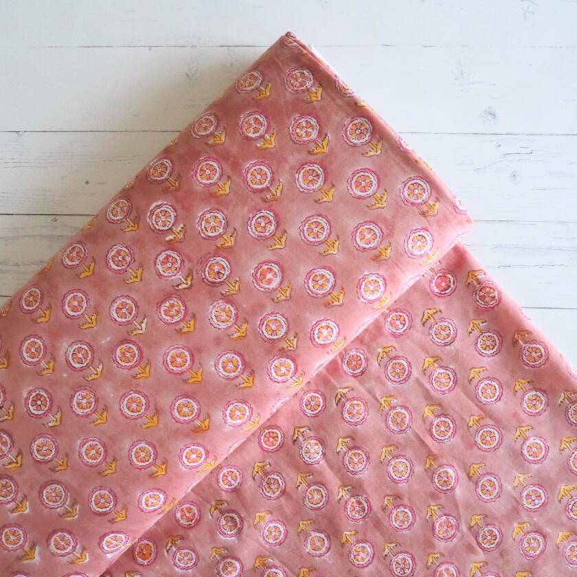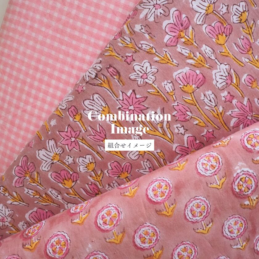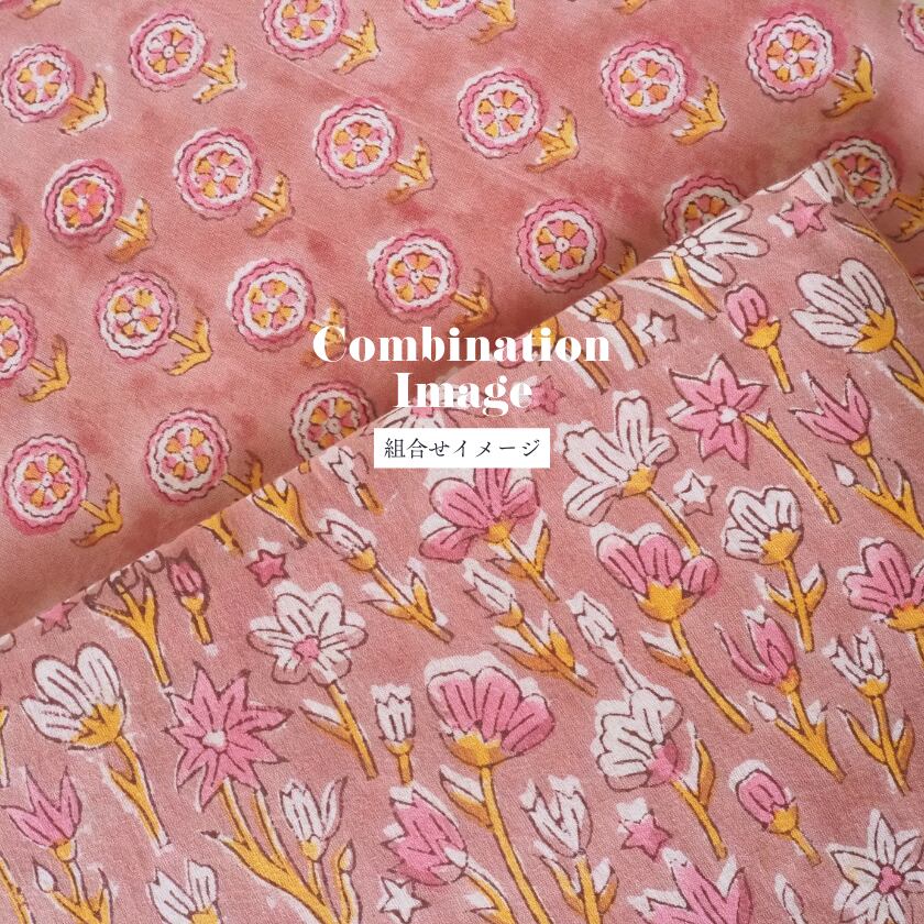 ブロックプリント生地【50cm単位】インド綿 小花柄 くすみピンク×イエロー×白 #56224-PK2