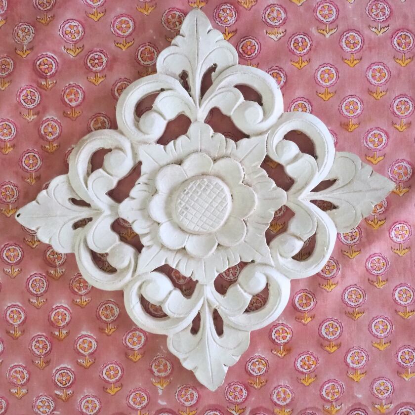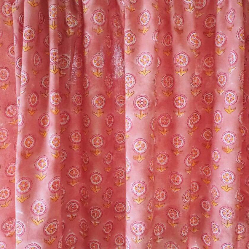 ハンドブロックプリントと呼ばれるインドのジャイプール地方に古くから伝わる伝統的な技法で、木彫りのスタンプで色を何度も重ね、全ての工程がインドの職人さんの手作業によって仕上がるAll Handmadeの生地です。