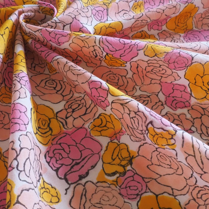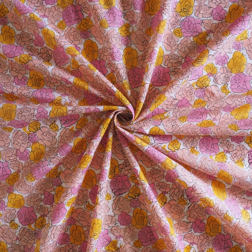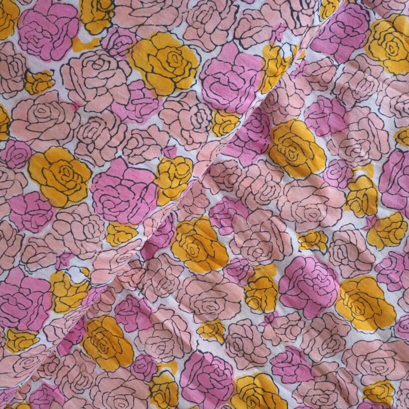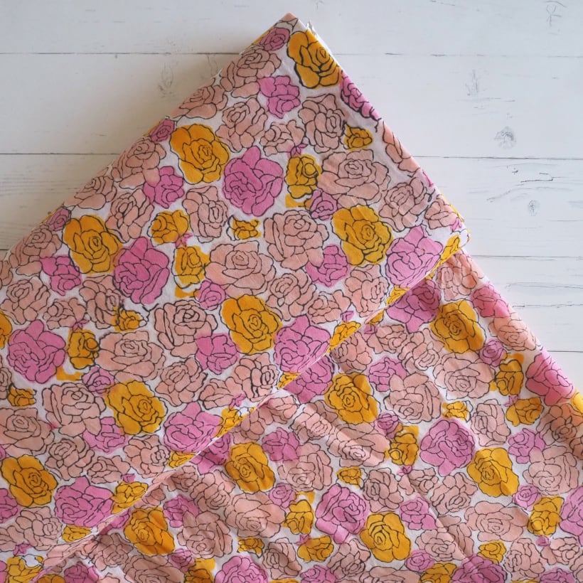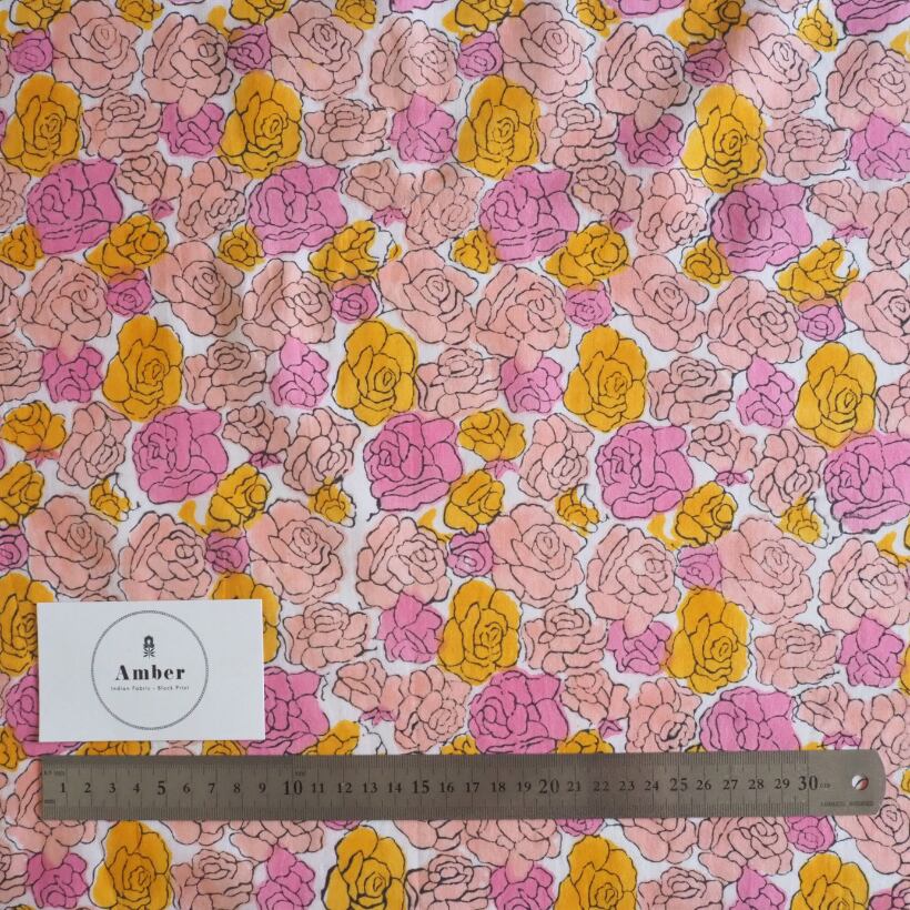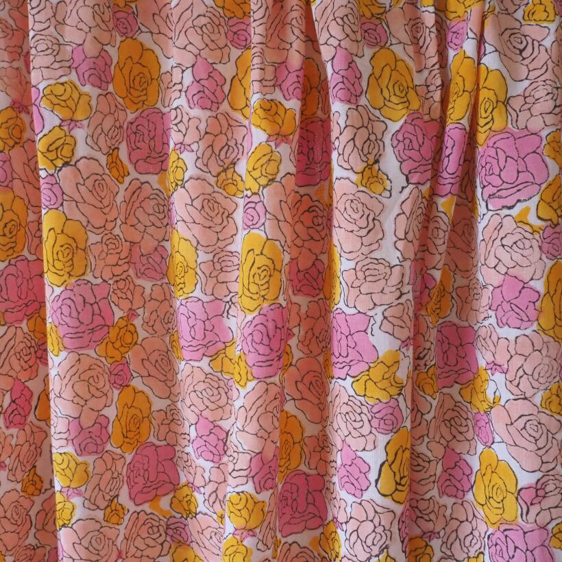 ブロックプリント生地【50cm単位】インド綿 花柄 ピンク×オレンジ #57629-PK1
