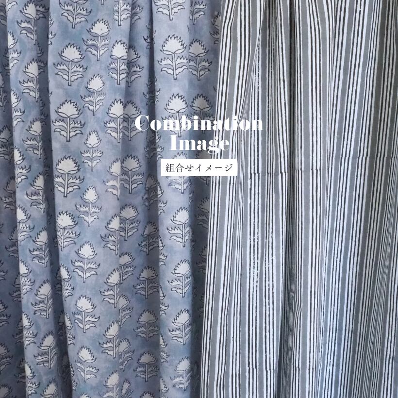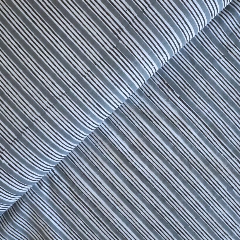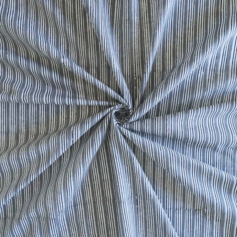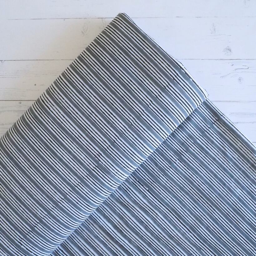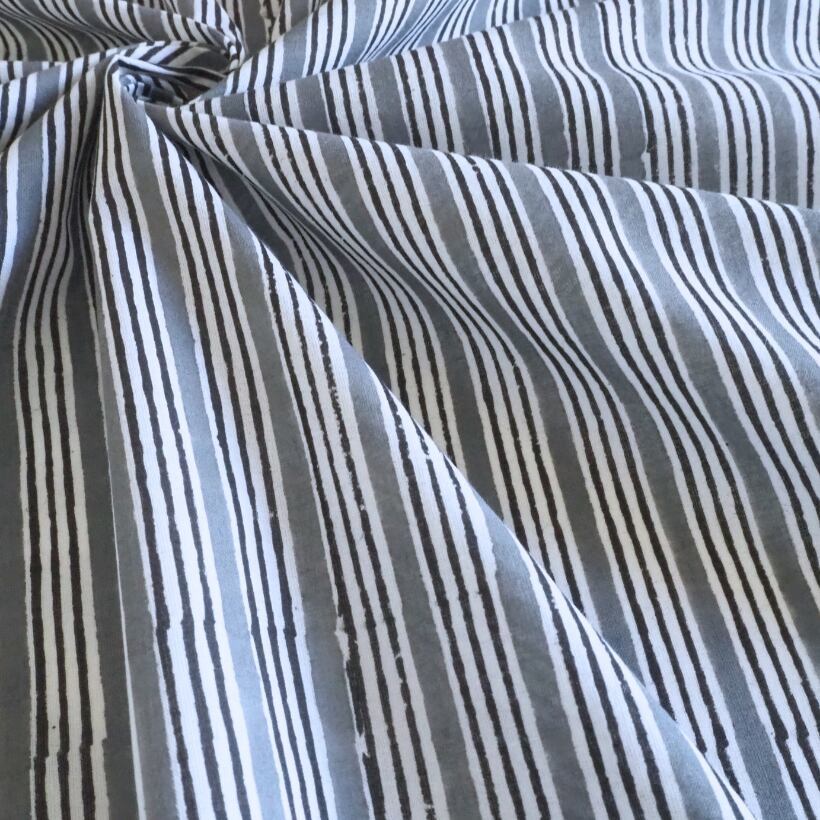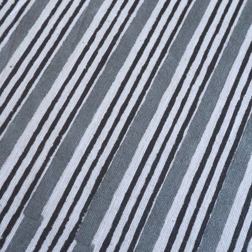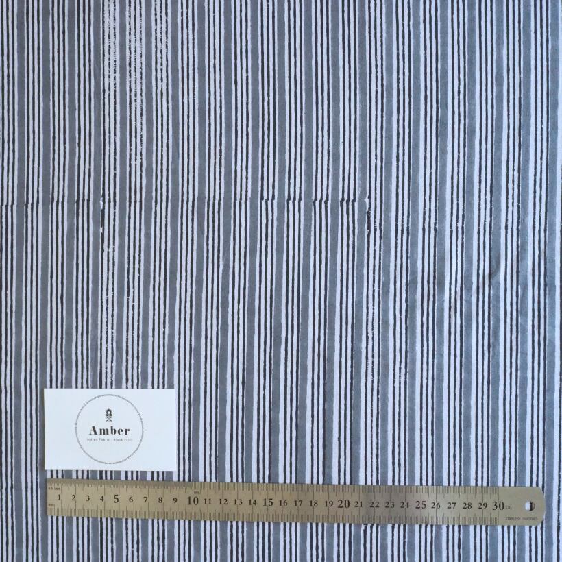 ブロックプリント生地【50cm単位】インド綿 ストライプ柄 グレー×白 #58710-GY1