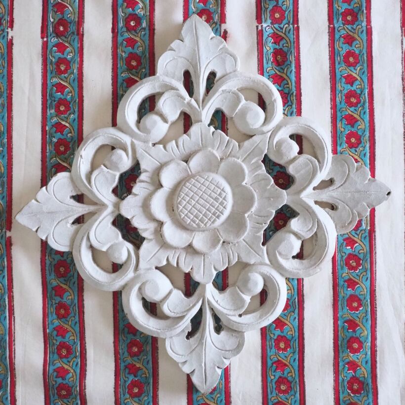 ハンドブロックプリントと呼ばれるインドのジャイプール地方に古くから伝わる伝統的な技法で、木彫りのスタンプで色を何度も重ね、全ての工程がインドの職人さんの手作業によって仕上がるAll Handmadeの生地です。