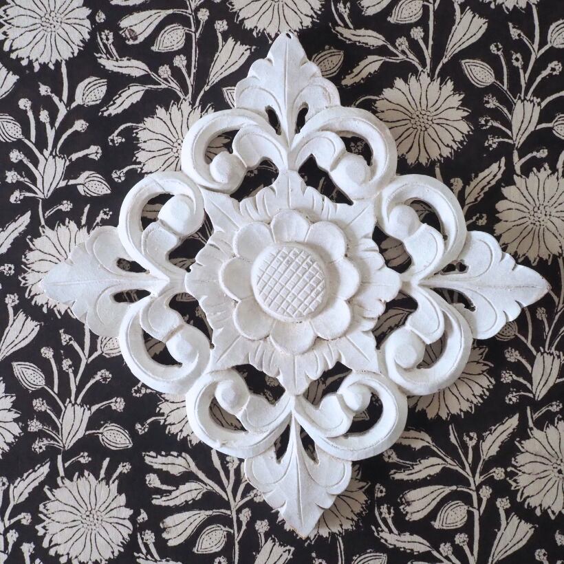 ハンドブロックプリントと呼ばれるインドのジャイプール地方に古くから伝わる伝統的な技法で、木彫りのスタンプで色を何度も重ね、全ての工程がインドの職人さんの手作業によって仕上がるAll Handmadeの生地です。