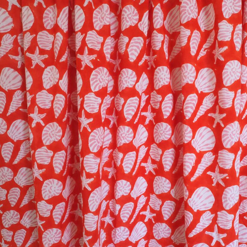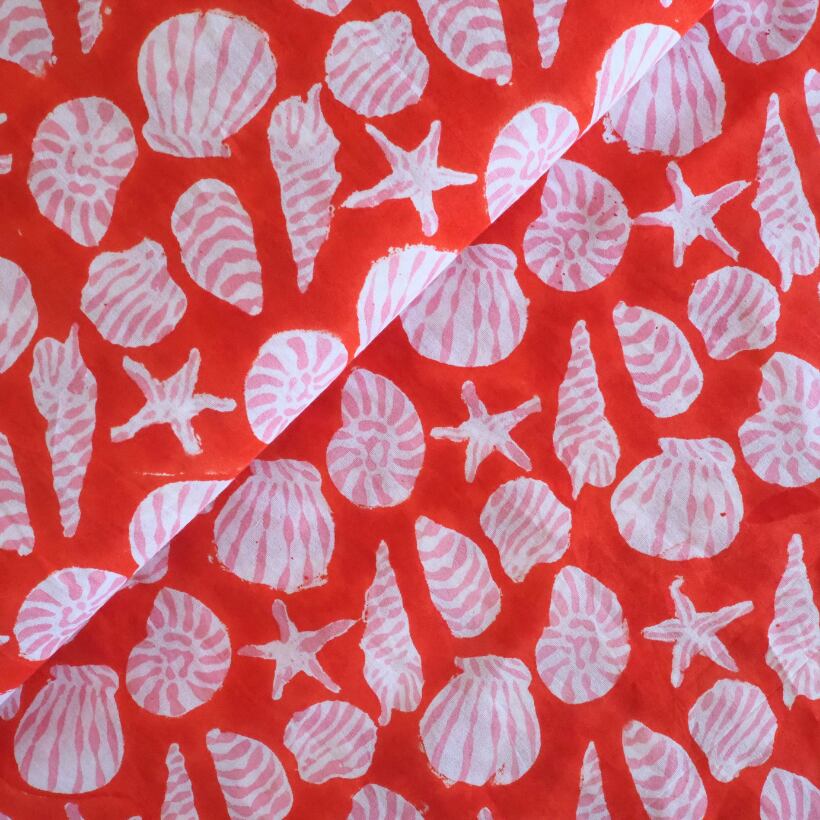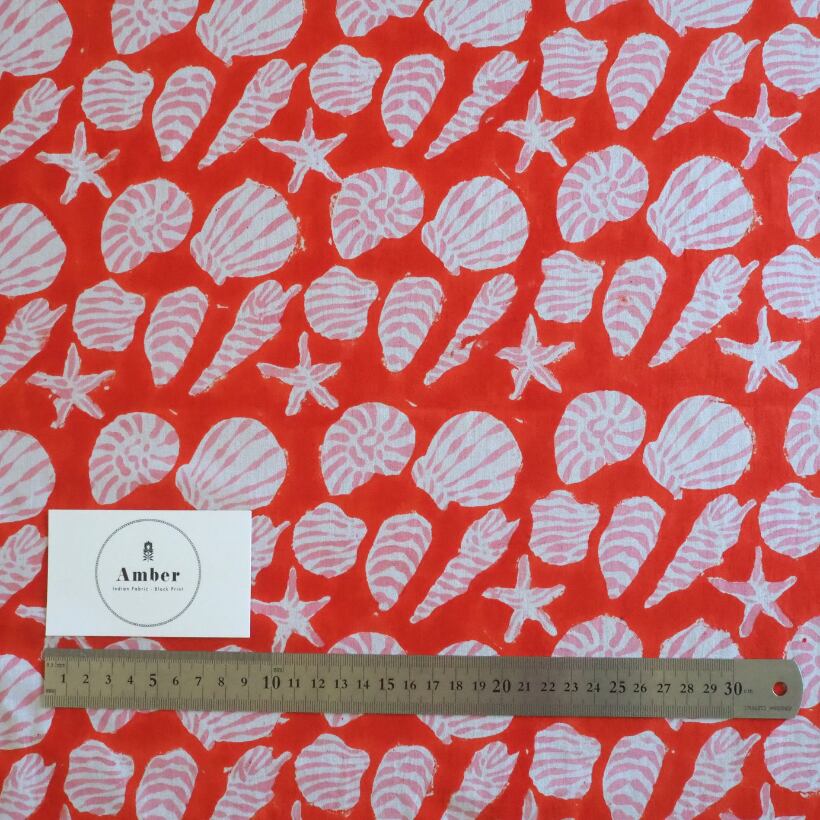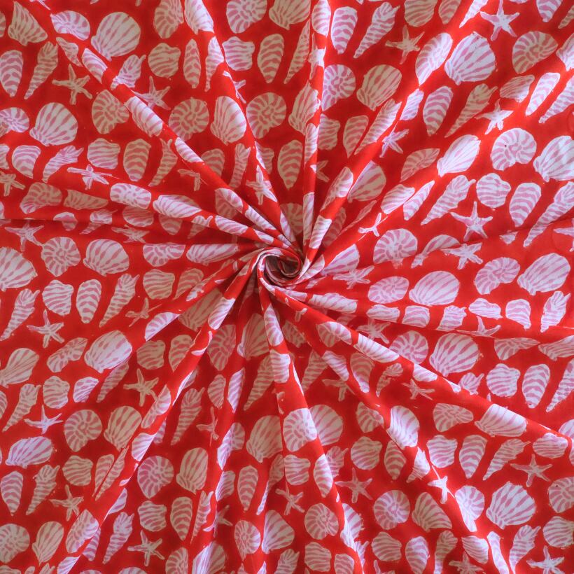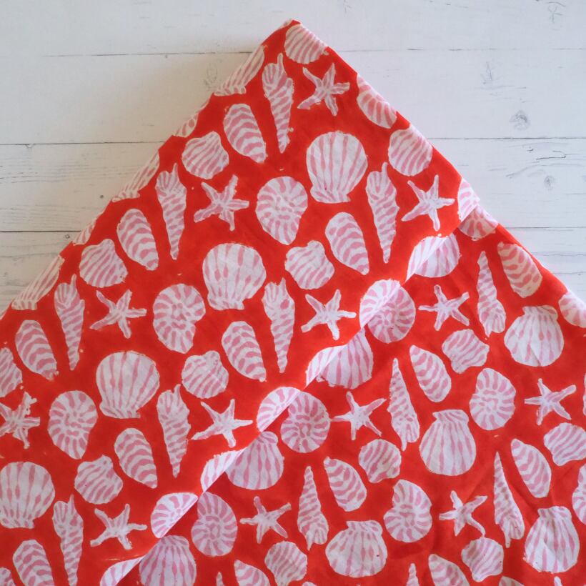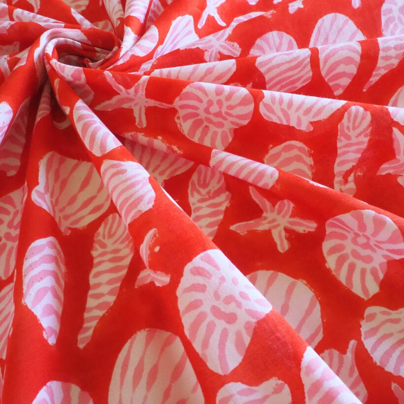 ブロックプリント生地【50cm単位】インド綿 Shell柄B 赤×ピンク×白 #60738-RD2