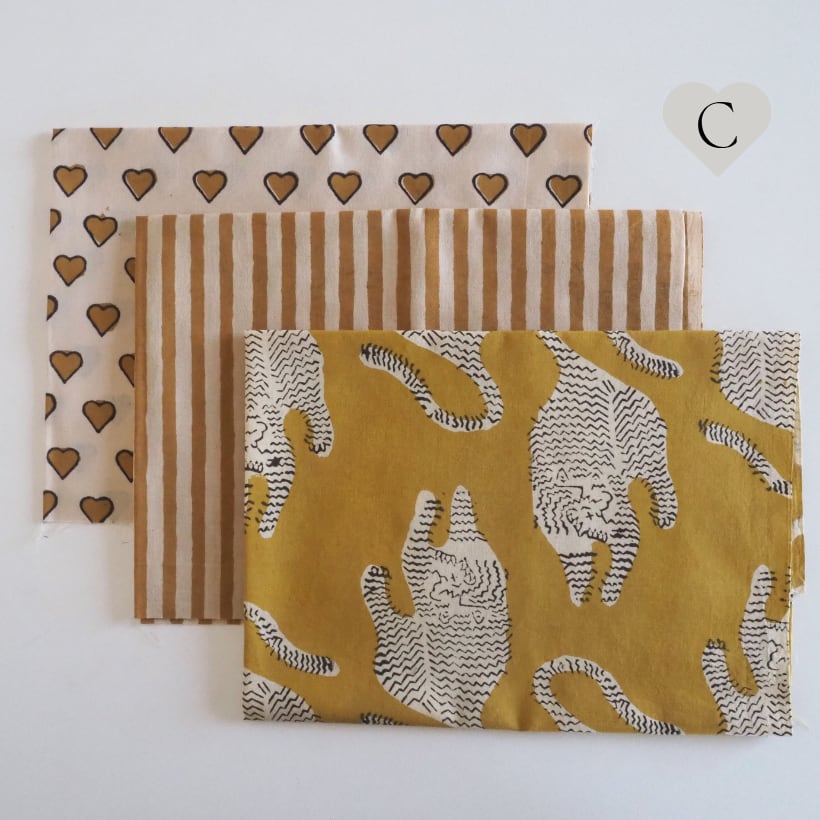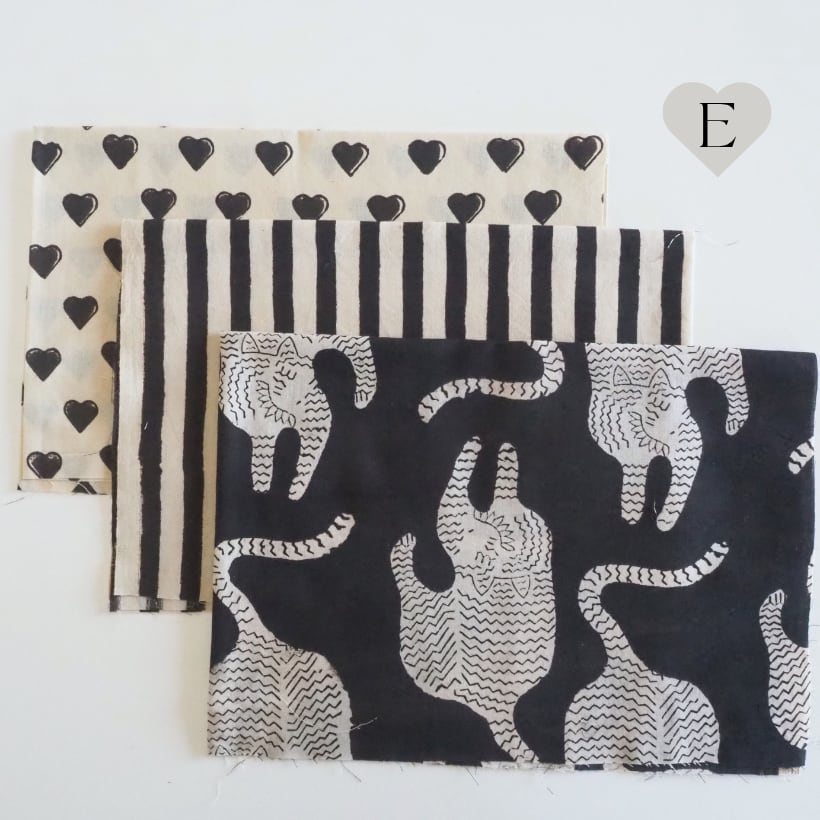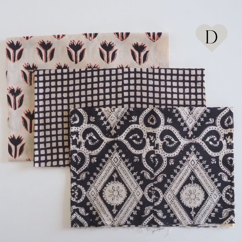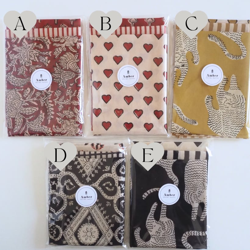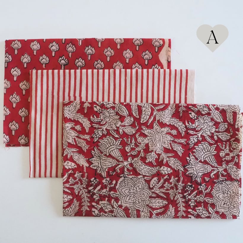 ブロックプリント生地【miniハギレ3点set】W50cm × H30cm〜40cm A-E