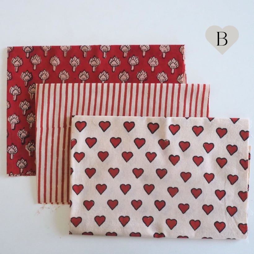 ブロックプリント生地の「miniハギレ3点set」です。