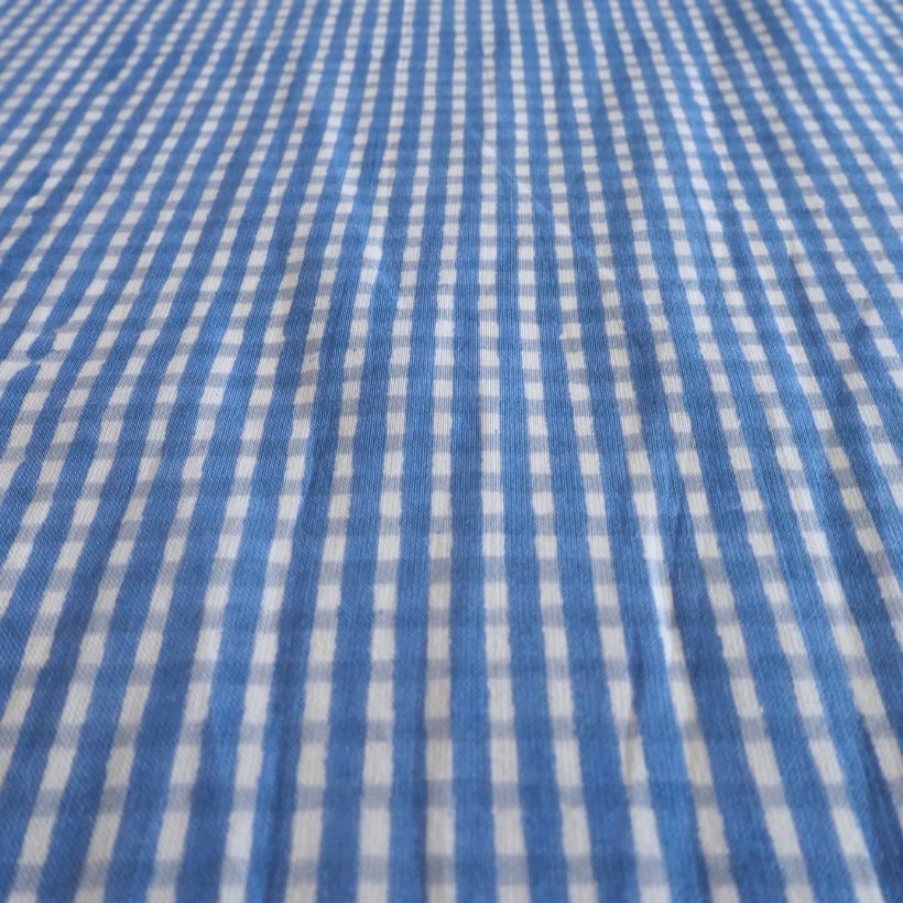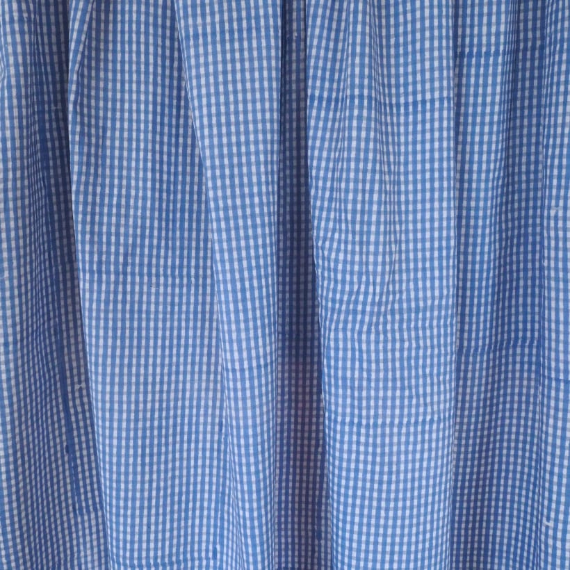 ブロックプリント生地【50cm単位】インド綿 チェック柄 ブルー×白 #62110-BL1