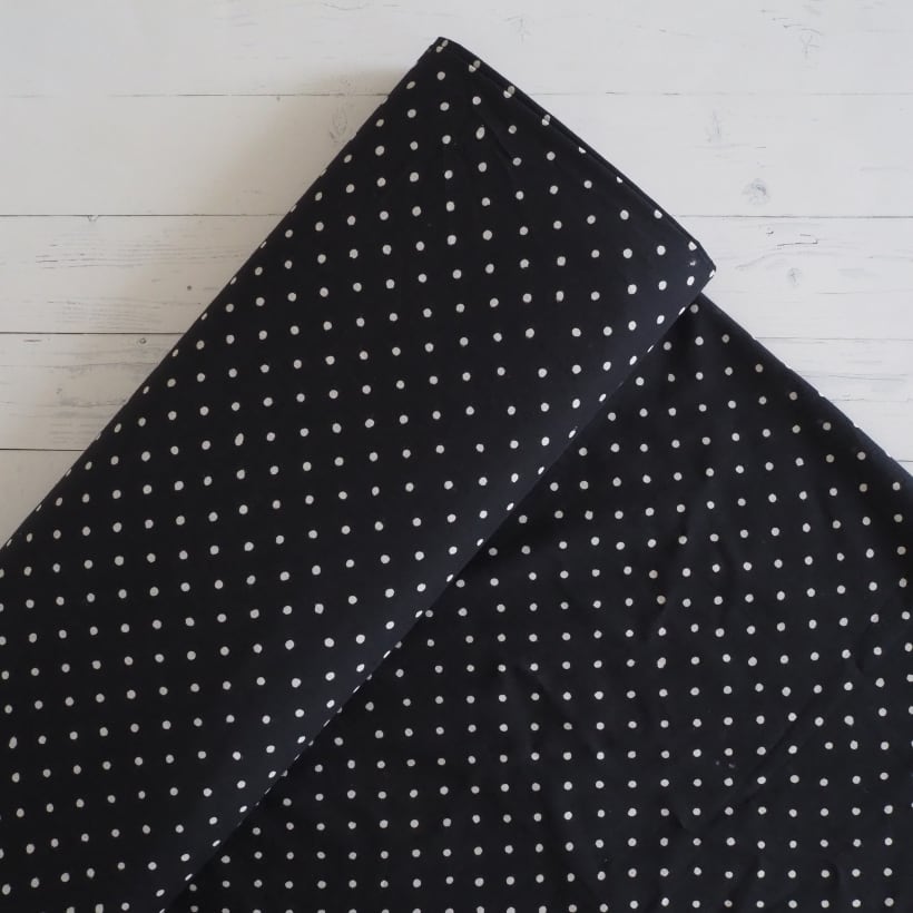 ブロックプリント生地【50cm単位】インド綿 ドット柄 黒×白 #62410-BK1