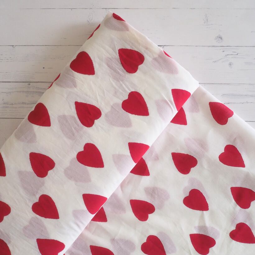 ブロックプリント生地【50cm単位】インド綿 ハート柄 白×赤 #62510-WT1