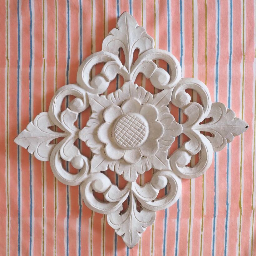 ハンドブロックプリントと呼ばれるインドのジャイプール地方に古くから伝わる伝統的な技法で、木彫りのスタンプで色を何度も重ね、全ての工程がインドの職人さんの手作業によって仕上がるAll Handmadeの生地です。