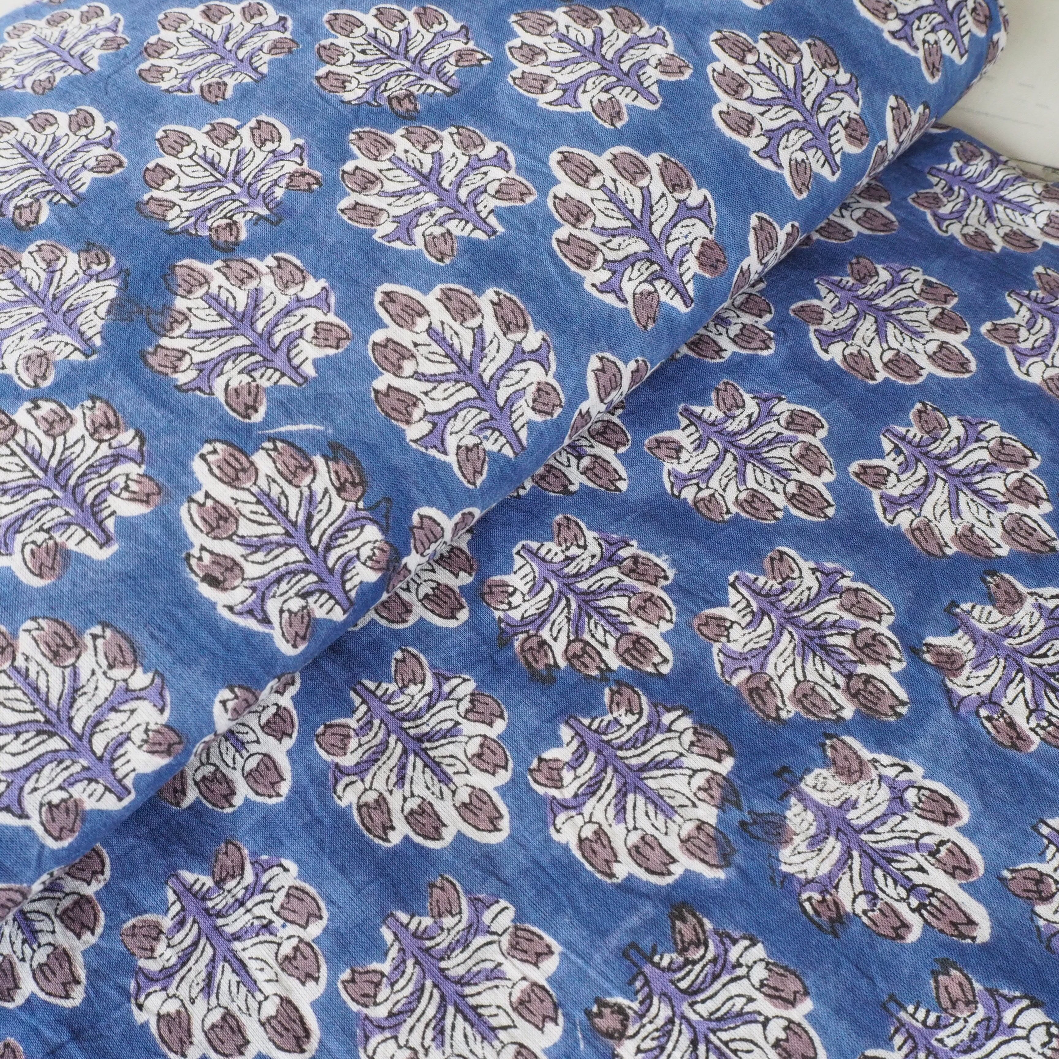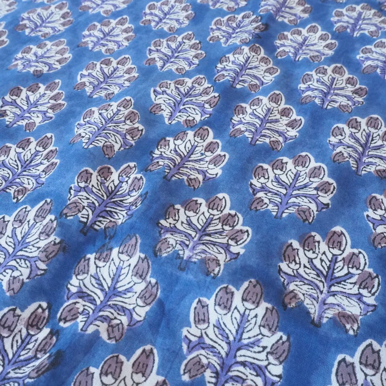 ブロックプリント生地【50cm単位】インド綿 小花柄 青×パープルグレー×白 #11911-BL1