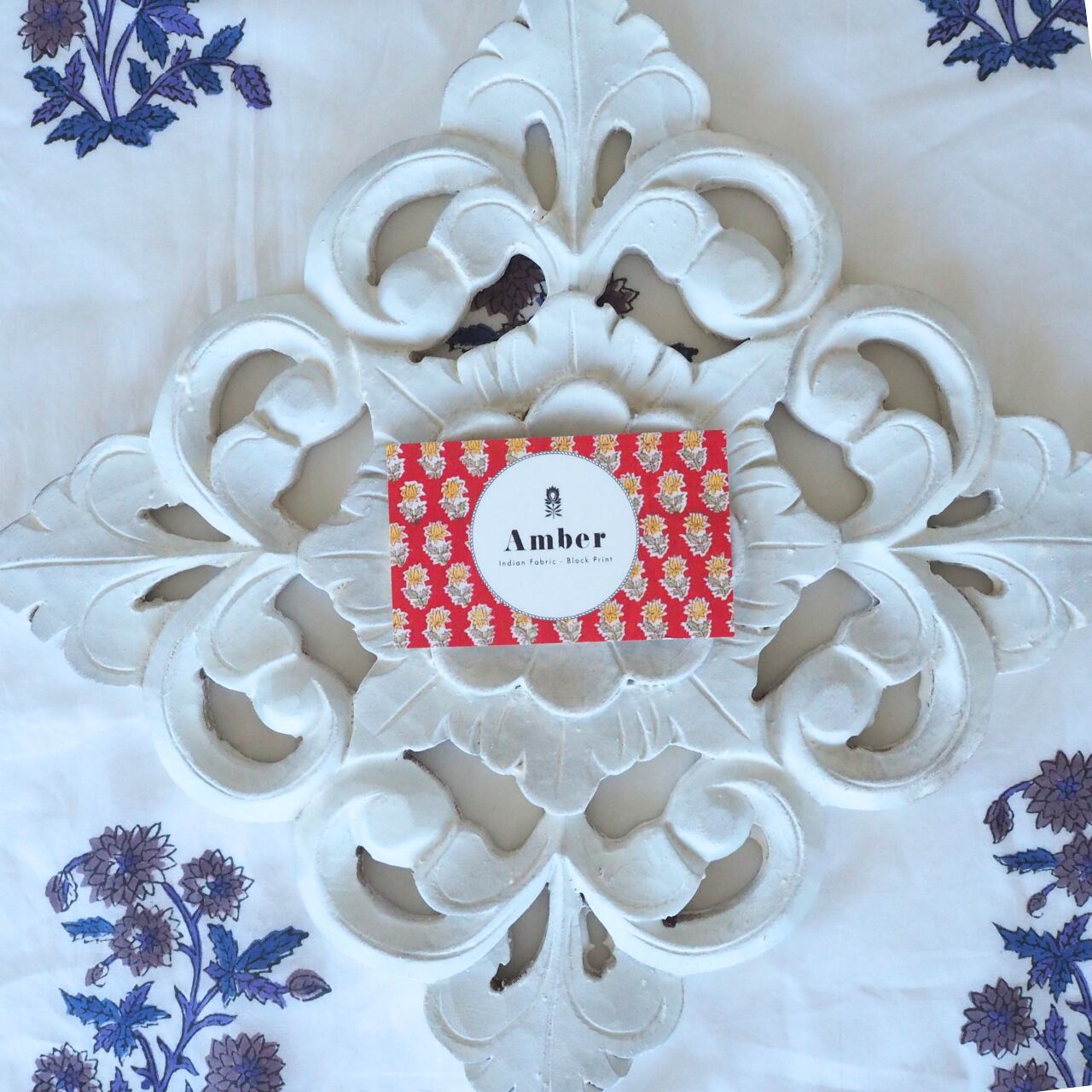 ハンドブロックプリントと呼ばれるインドのジャイプール地方に古くから伝わる伝統的な技法で、木彫りのスタンプで色を何度も重ね、全ての工程がインドの職人さんの手作業によって仕上がるAll Handmadeの生地です。