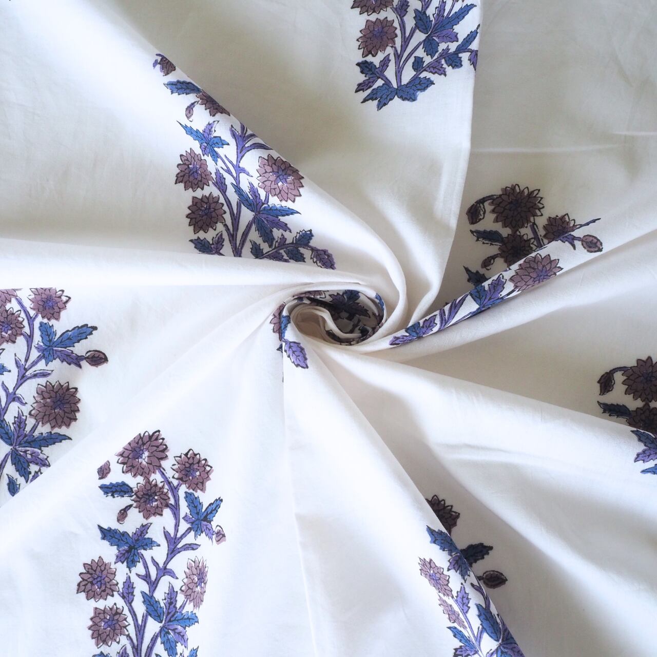 ブロックプリント生地【50cm単位】インド綿 花柄 白×青 #12011-BL2